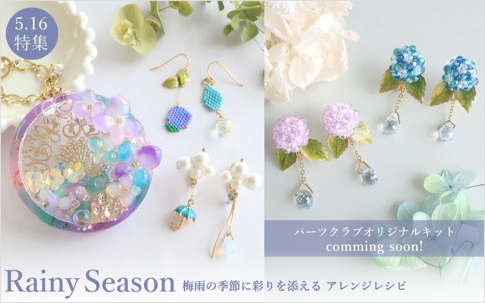 PARTS CLUB online <新商品掲載>5/16(木)オンラインショップでは梅雨の季節ならではのモチーフでハンドメイドを楽しめる材料セットとオリジナルキットが新たに発売されました。