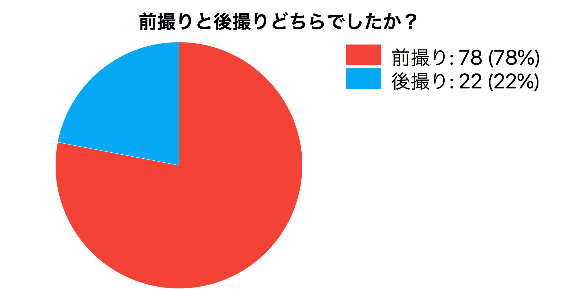 「Q2.前撮りと後撮りどちらでしたか?」と質問したところ、「前撮り」が78%、「後撮り」が22%という結果になりました。