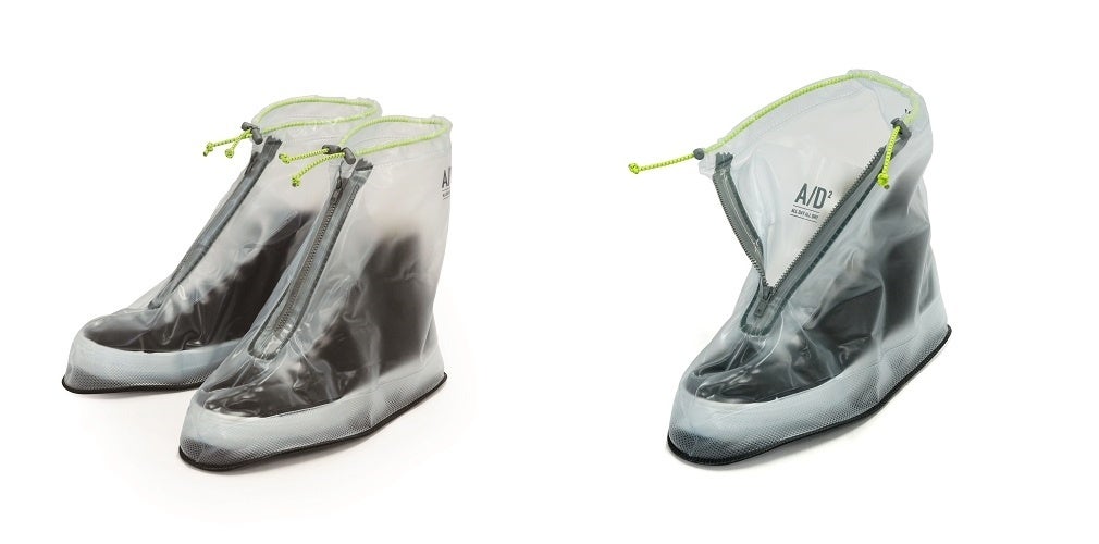 お気に入りの革靴やスニーカーを突然の雨からスマートに守るシューズレインカバー。最大の特徴は、開口部が広く靴を履いたままサッと装着できる手軽さ。ハイカット仕様でパンツの裾までカバーでき、ソールには滑り止めの凹凸加工が施されています。軽量・コンパクトで専用ケース付き。