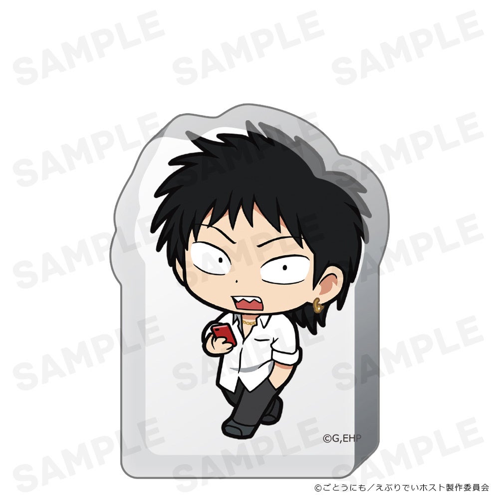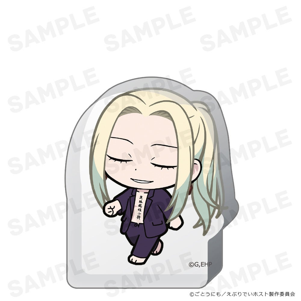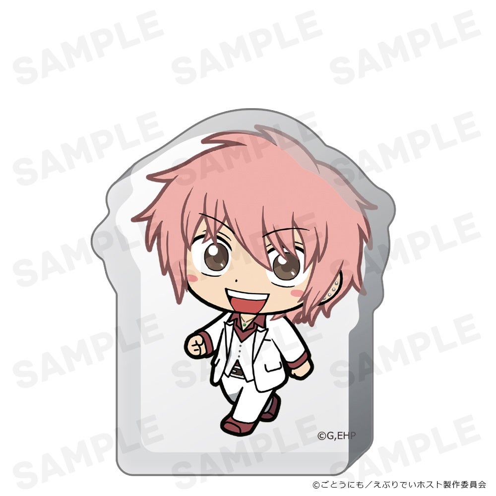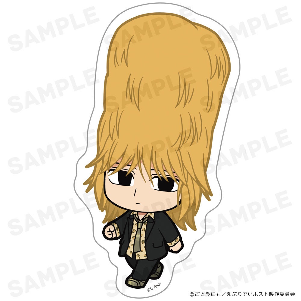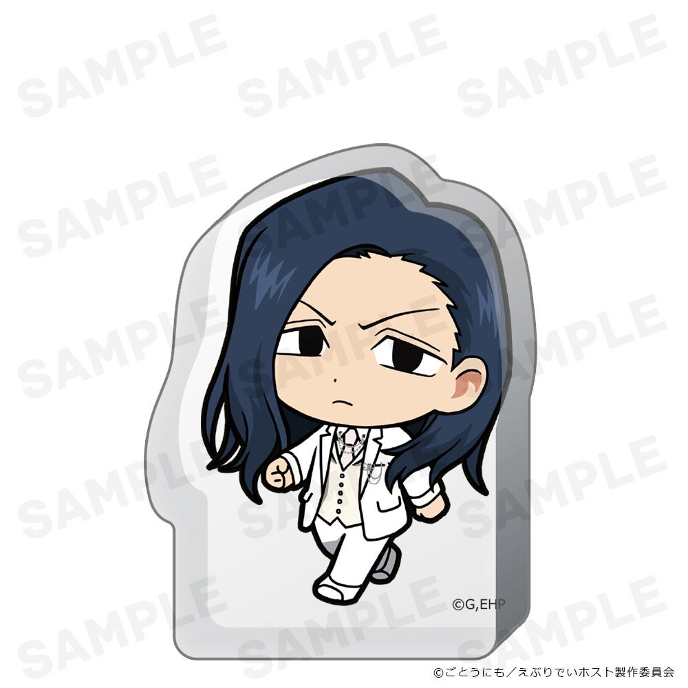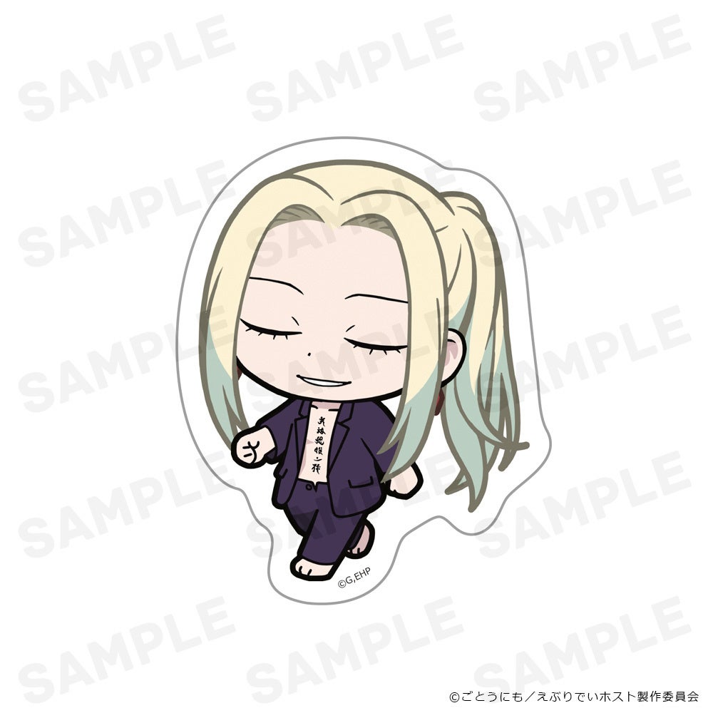 アニメ「えぶりでいホスト」ホログラム缶バッジ4個セット、ついてっく缶バッジ4個セット、ついてっく厚みアクリルスタンド、ついてっくダイカットステッカーの受注を開始しました!