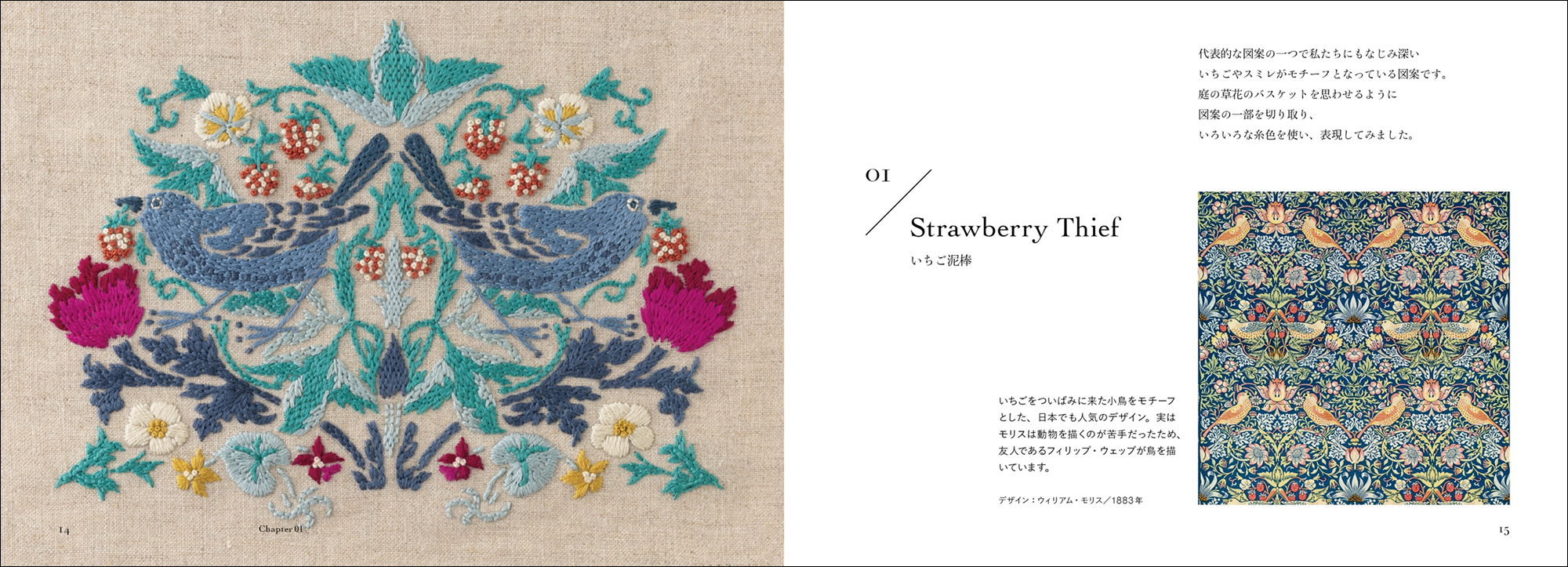 モダンデザインの父、ウィリアム・モリスの刺繍がこの一冊に。「いちご泥棒」など不朽の名作20種を図案化『ウィリアム・モリスの刺繍図案帖』1月発売