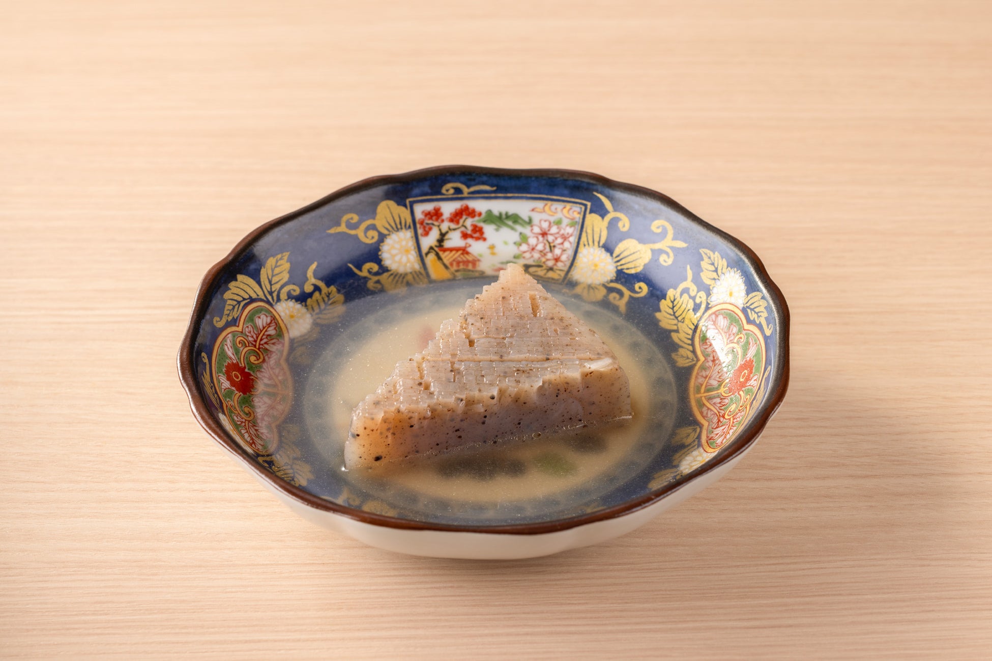 ろ鰻のおでんはクリアで雑味のない旨味が特長の「貝だし」。貝だしならではの上品な香りが鼻先を擽り、口に入れた瞬間に深い贅沢な旨味が広がります。