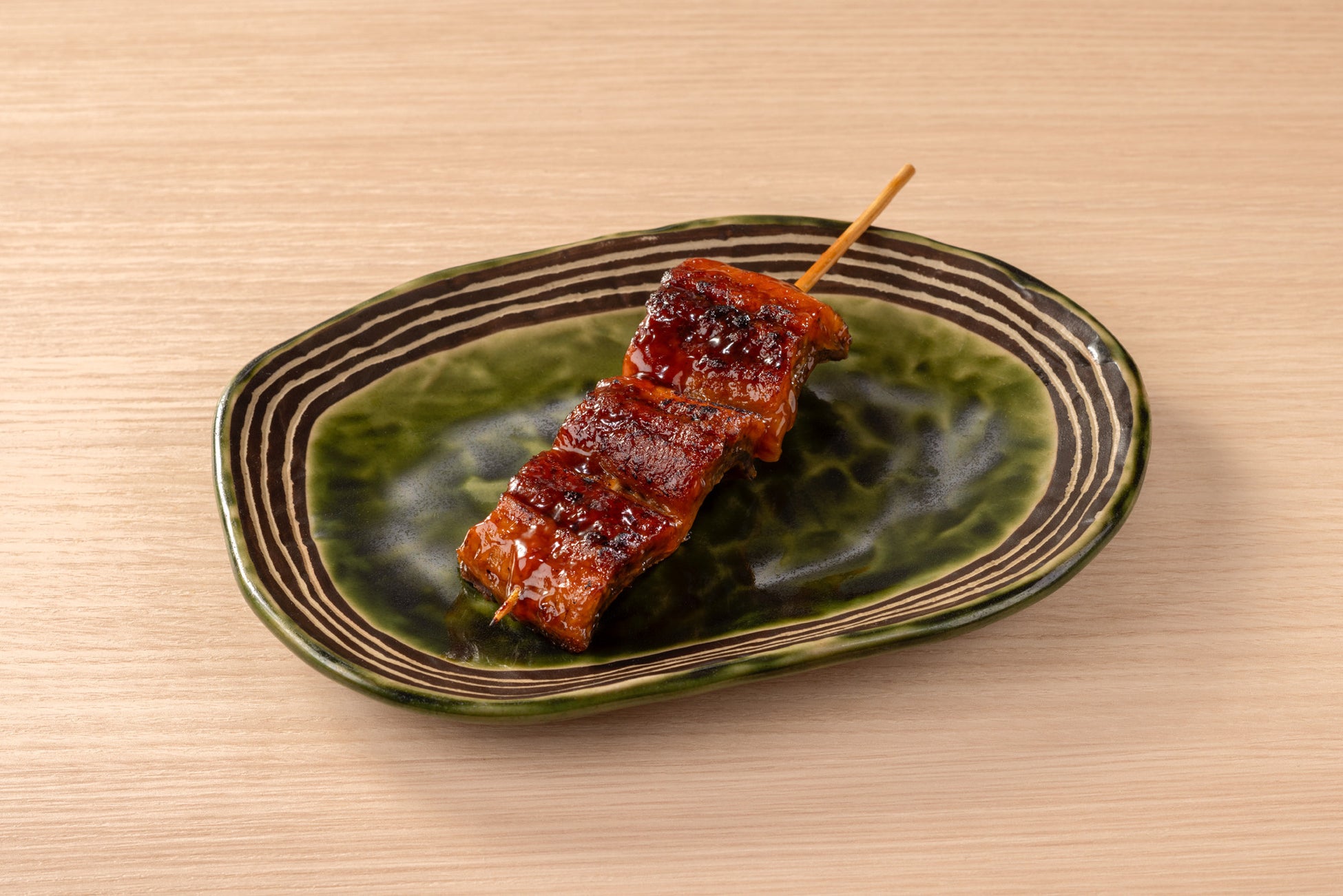 うなぎの蒲焼を作る工程で生まれる端切れを串に巻いて焼き上げたもの。うなぎの味わいはそのままに片手で手軽につまめる串焼きは、うなぎ愛好家には人気のメニューです。