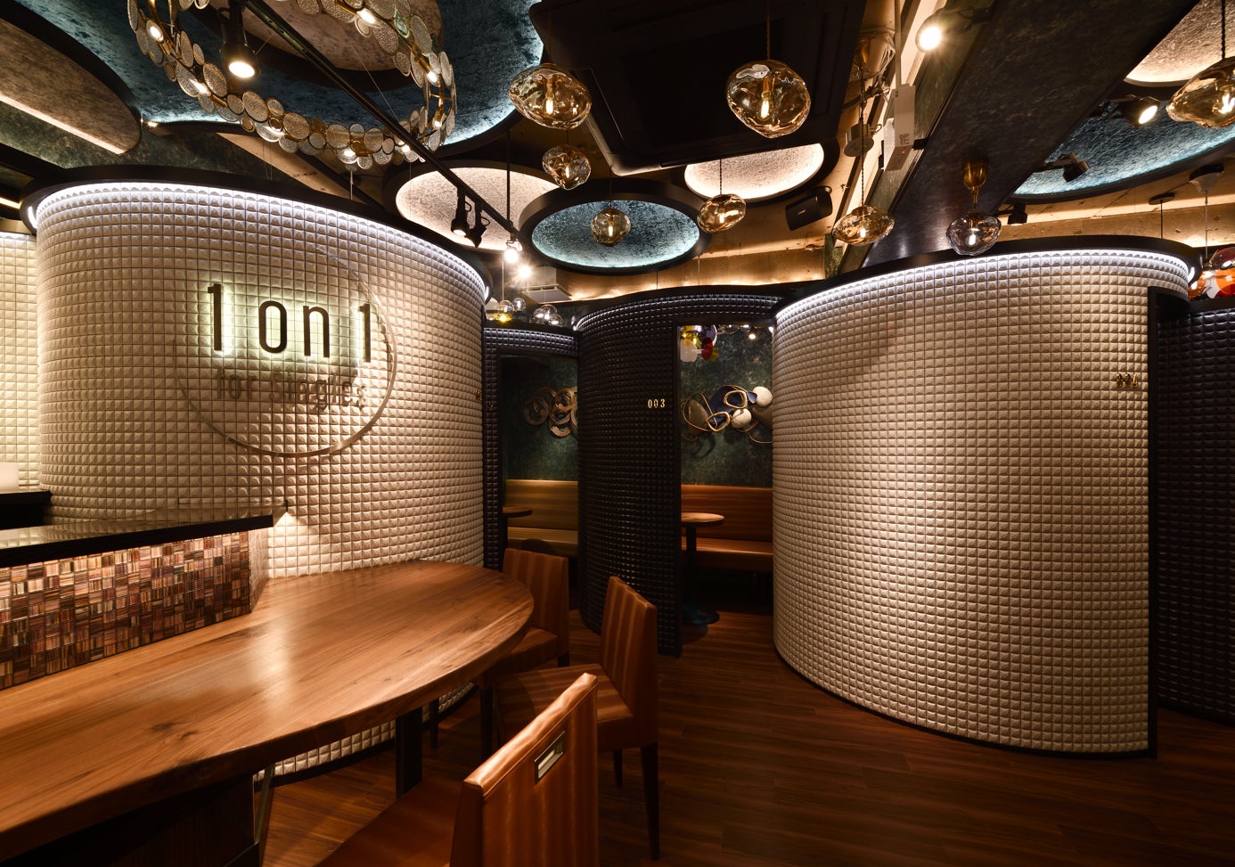 「1on1 for Singles」とは、全ての「おひとり様」に向けた新たな1対1の出会いのサービスです。当店は会員制となっており、ワンランク上のプレミアムな空間で上質な出会いをお届けいたします。1回の1on1を20分とし、全席個室のプライベート空間でドリンクを楽しみながら、お客様同士ゆっくりお話をしていただくことができます。
