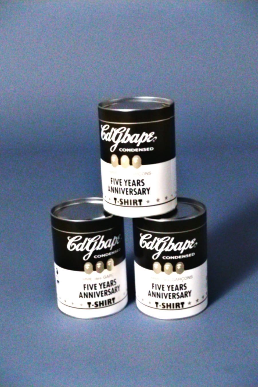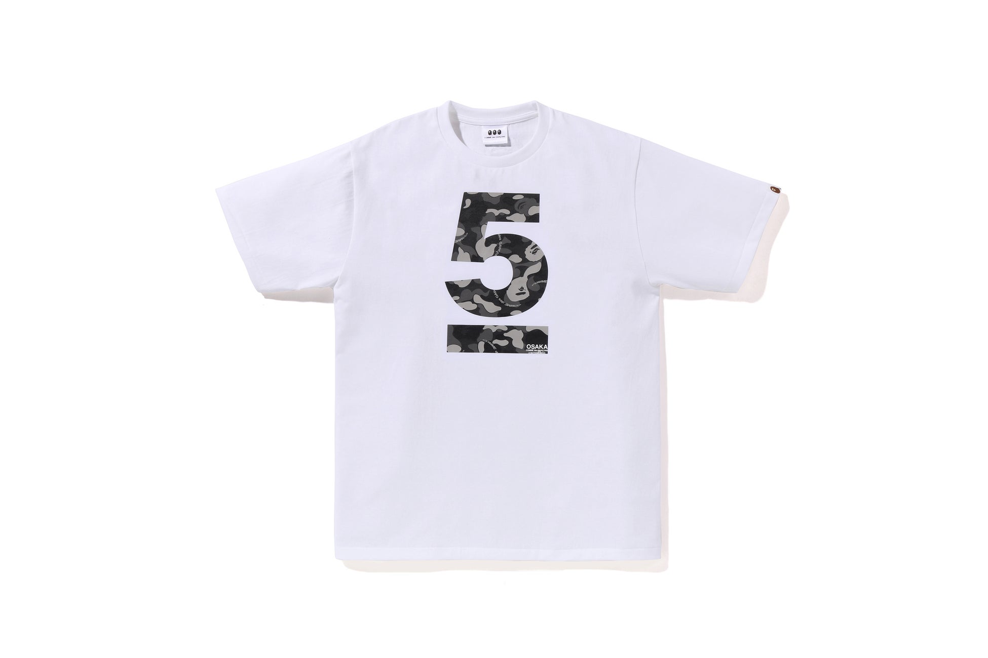 モノトーンのオリジナルカモフラージュを全面にあしらい、「CDG OSAKA BAPE®」のカレッジロゴをプリントしたグラフィックTシャツをはじめ、5周年にちなんで5色の“APE HEAD”が重なり合ったデザインや、CAMO柄の5周年ロゴをフロントに大胆に配したモデルなど、いずれも周年を彩るスペシャル仕様となっています。 また、5周年ロゴのTシャツは記念の缶に封入された特別パッケージが付属します。