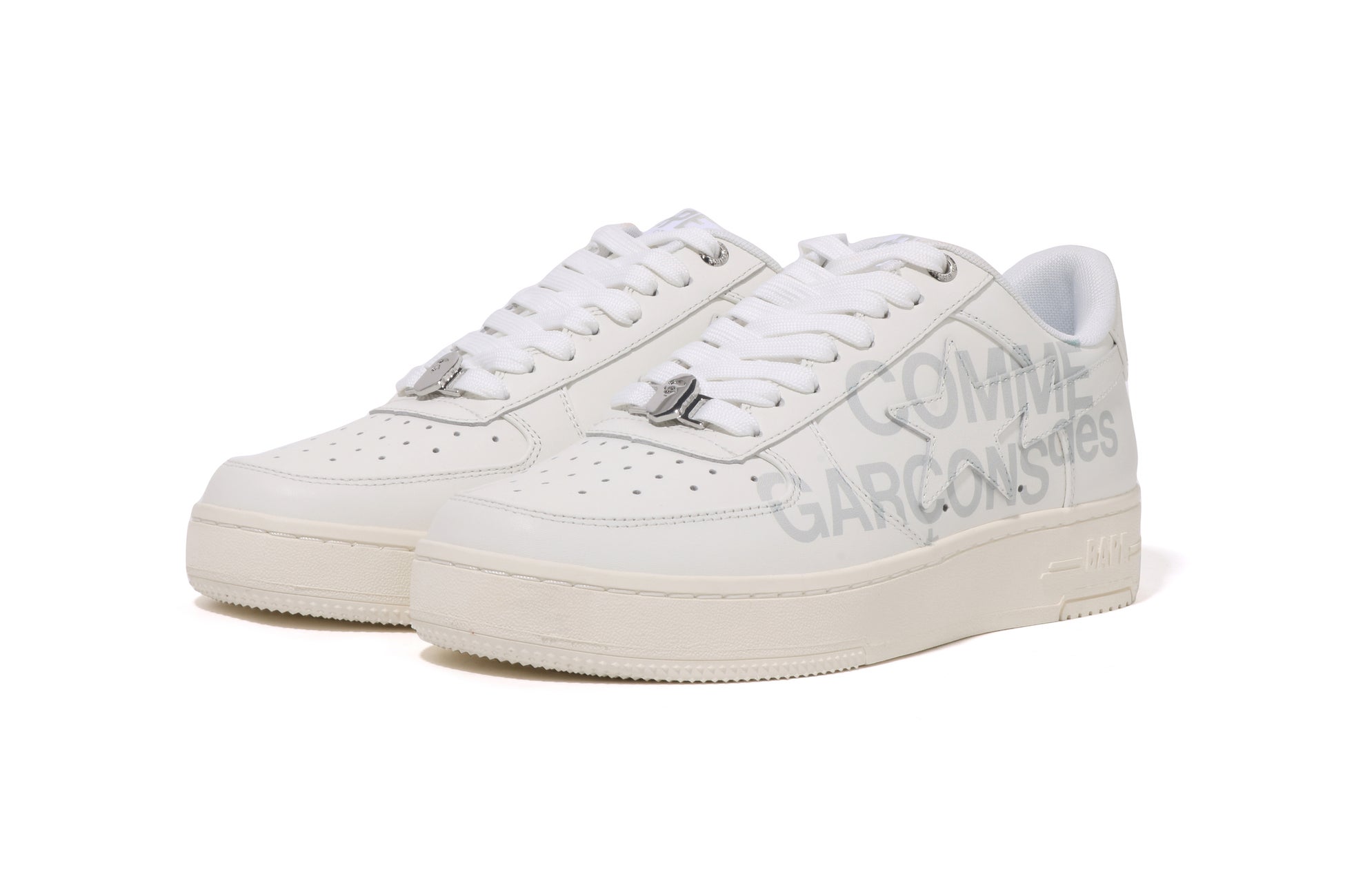「BAPE STA™️」は、ホワイトのアッパーに同色で「COMME des GARÇONS」のロゴをプリント。両ブランドのアイデンティティが凝縮された、特別な一足です。付属のオリジナルシューズバッグに加え、5周年記念の特別仕様となるシューズボックスに収めてお届けします。
