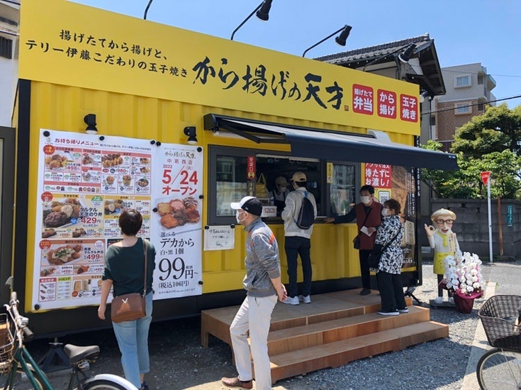 揚げたてから揚げとテリー伊藤こだわりの玉子焼き「から揚げの天才」は、2021年12月に初のコンテナタイプの店舗を相模台にオープンし好調に推移しています。そして今回、好調なコンテナタイプの6号店出店が決まり、2022年5月24日(火)に江戸川区中葛西にオープンし、オープン初日は400名を超えるお客様にご来店頂きました。