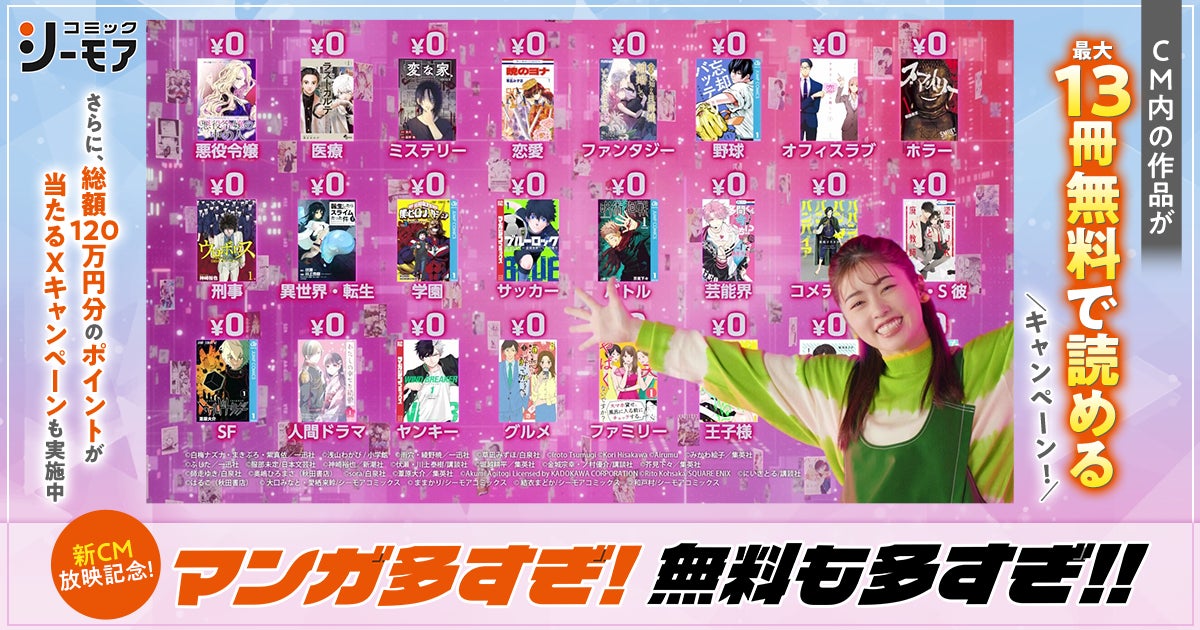 新CM公開を記念して、CM内に登場する作品などが無料で読め、また1000ポイントが抽選で当たる、
