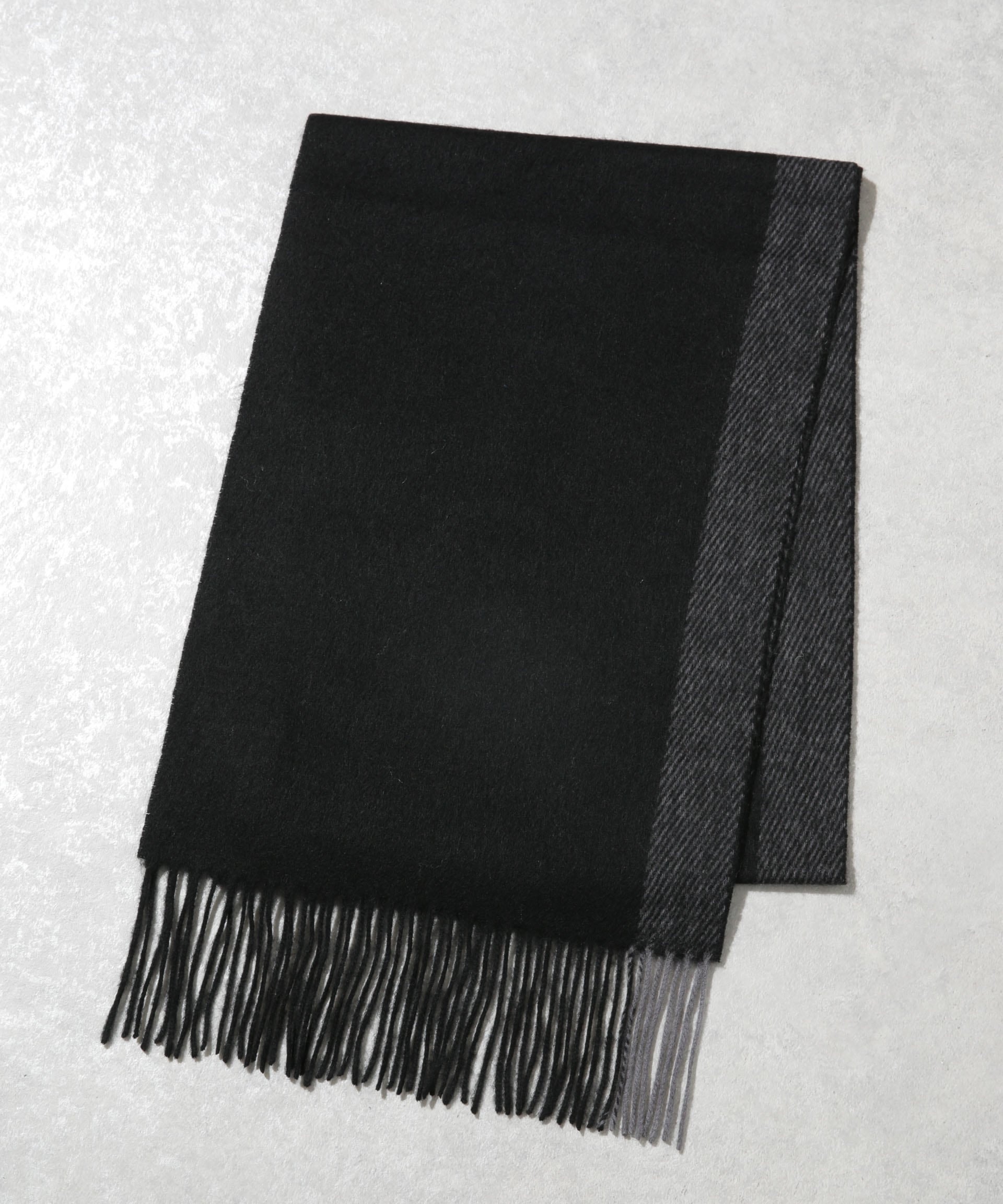 上質なウールにカシミヤをブレンドしたマフラー。オリジナルで糸から作成することで、肌触りが良く柔らかくて軽い仕上がりにしています。