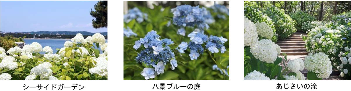 期 間 : 2024年6月1日(土)~23日(日) 時 間 : 10:00~16:00 参 加 費 : 無 料 場 所 : あじさい見どころスポット 8か所(★はスタンプ設置ポイント) 【1・スタート】★西浜 シーサイドガーデン 海をバックにあじさいが爽やかに咲き誇ります。 【2】あじさい坂(西浜から丘の広場まで上る坂) あじさいに彩られた坂道。園路を華やかに盛りあげます。 【3】★シークレットガーデン(広場まで上る坂道の途中) 「あじさい坂」の途中に現れる秘密のお庭のような「シークレットガーデン」。「ピンクアナベル」たちが緑の中に映えます。 【4】★ブルーパラダイス(丘の広場) あじさいとバラのコラボレーションがご覧いただけます。 【5】★八景ブルーの庭(築山東側バス発着場) 八景島オリジナルあじさい「八景ブルー」が咲き誇ります。 【6】あじさいの花道(丘の広場からカーニバルハウスまで下る坂) 丘の広場から緩やかな坂道の両サイドにあじさいが咲き並び、あじさいがお客さまをシーパラダイスへ導きます。 【7】あじさいの滝(カーニバルハウスから丘の広場へ上る階段) 白いあじさい「アナベル」が清流滝のように咲き誇るメインストリート。 【8・ゴール】★新緑のあじさい(カーニバルハウス前花壇) 新緑の中をあじさいが爽やかに彩ります。 特 典 : 横浜・八景島シーパラダイス内のレストラン、ショップ、パラダイスクルーズの割引特典等をご案内。 さらに、あじさいマップを「三井アウトレットパーク 横浜ベイサイド」へお持ちいただくと、お一人さま一回限りにて先着500名さまに「三井アウトレットパーク 横浜ベイサイドのお買物・お食事券(500円分)」をプレゼント。 ※あじさいマップにスタンプ5個を集めた方のみが対象となります。 |