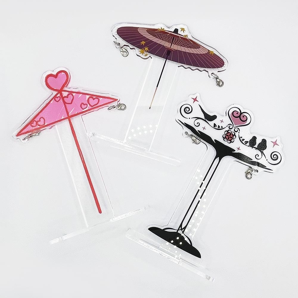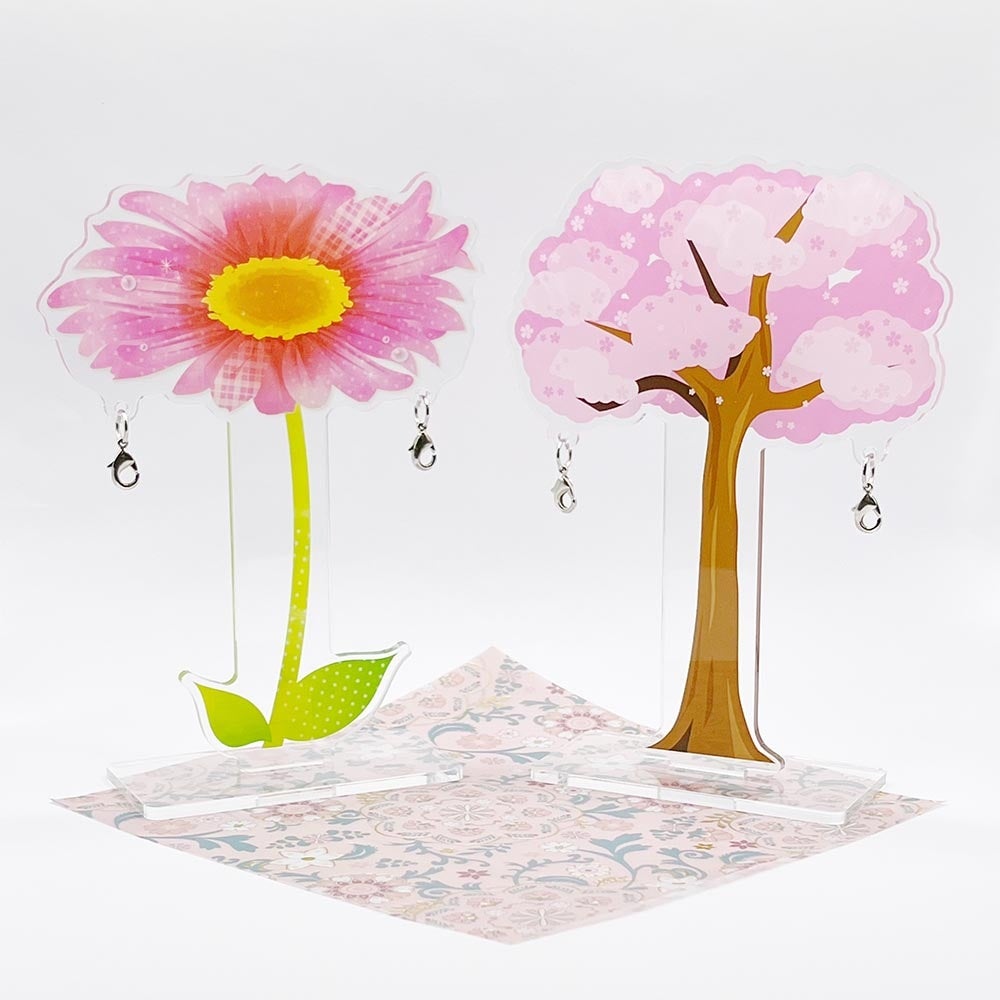 なかよしスタンドは使いやすい相合傘や番傘、桜の木など11種! いつ、どのような場面でもキーホルダーやラバーストラップなどを魅力的に飾ることができます。