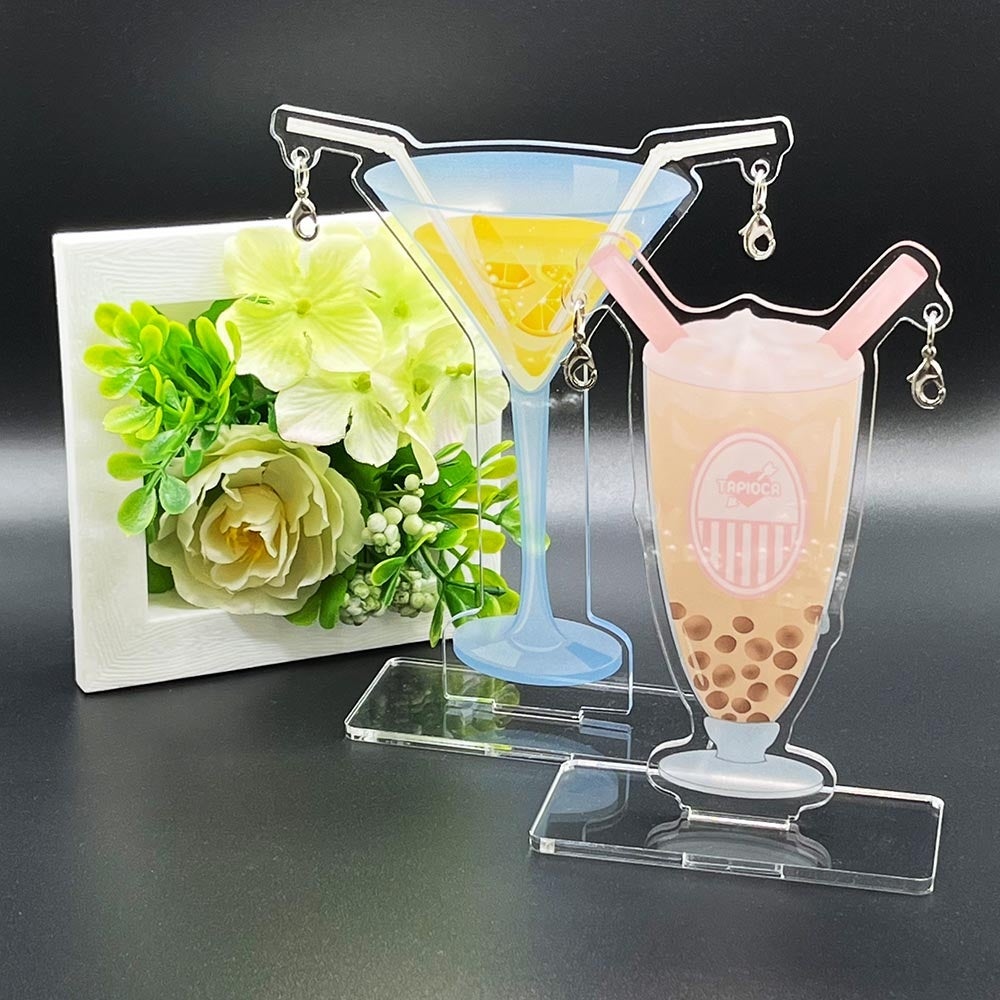 なかよしスタンドは、お好きな2つのキーホルダーやラバーストラップなどをぶら下げて、机や棚の上に置いて飾ることができるアクリルスタンドです。