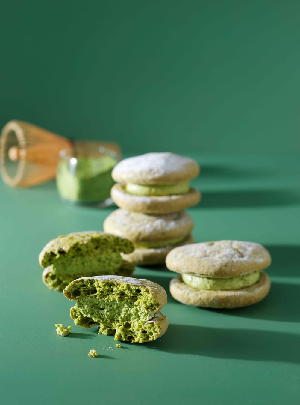 抹茶とチーズで季節的にもすっきりとした後味に仕上げました。抹茶バターチーズクリームにほんのりチーズを効かせたやわらかい抹茶生地でサンドしました。