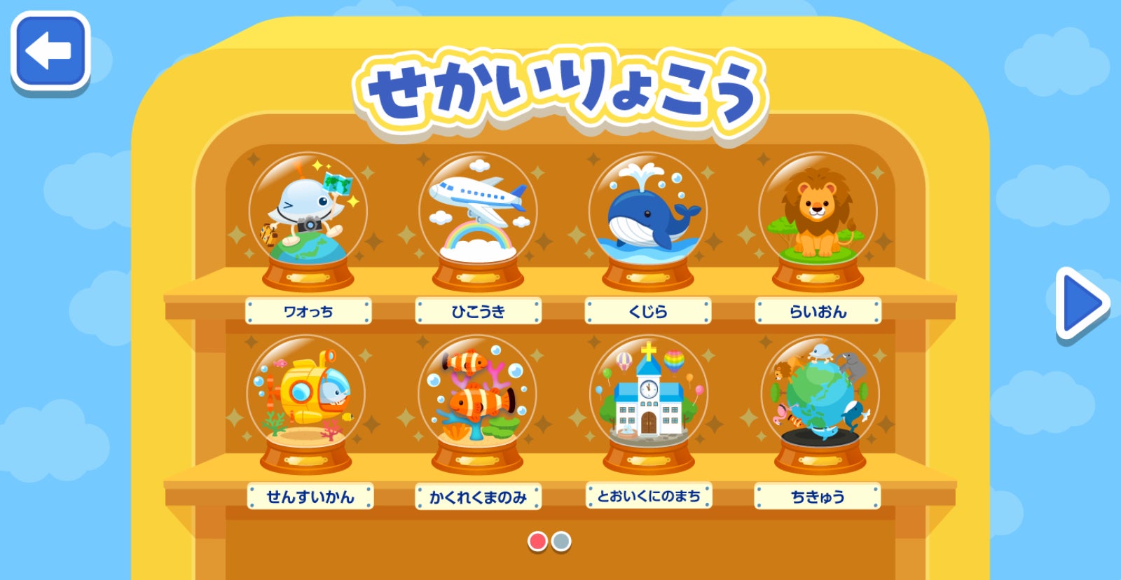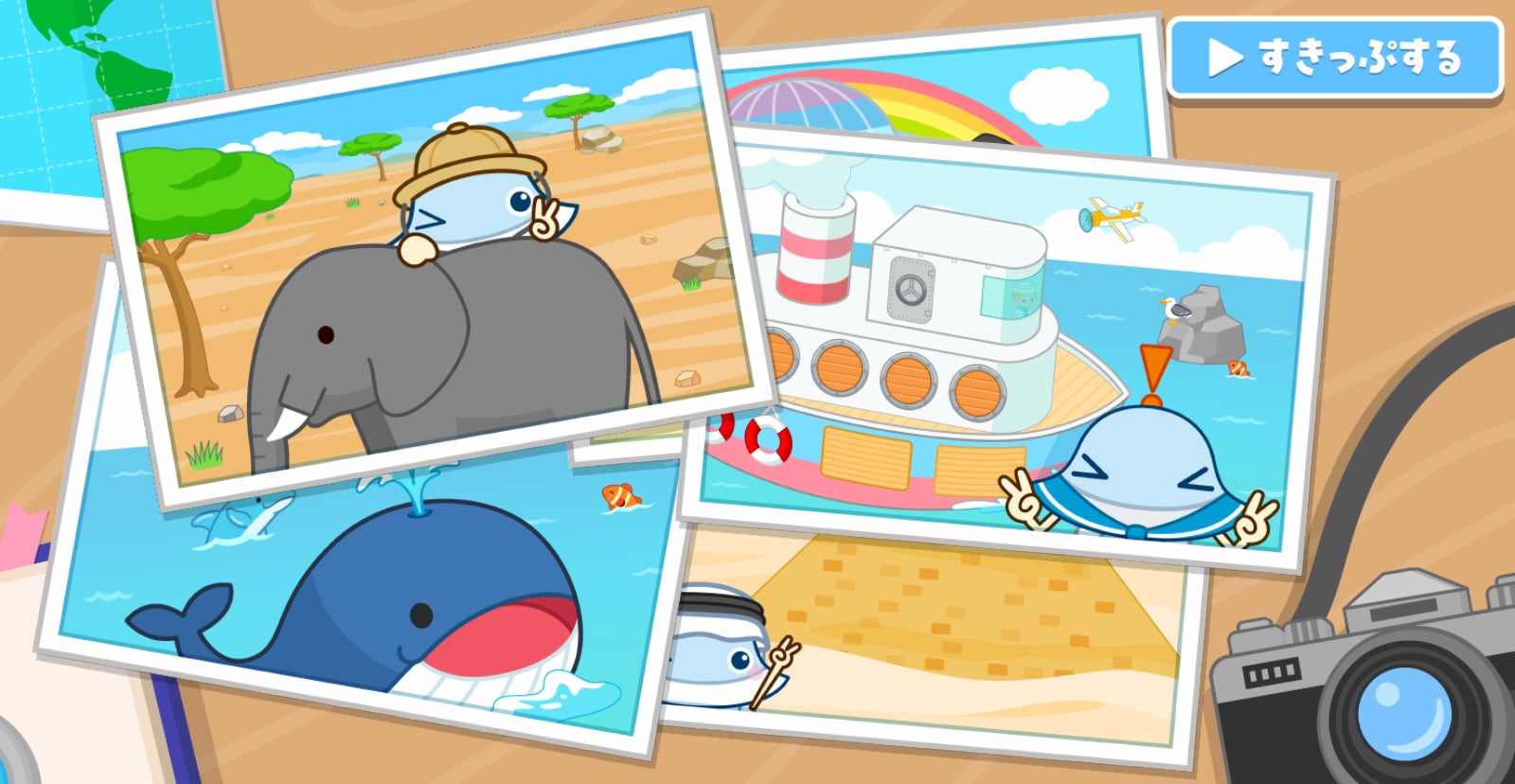 アプリをインストール後、すぐにはじめられる「せかいりょこうパック」では、旅の準備から世界の街・海など、物語に沿って9つのステージを楽しめます。