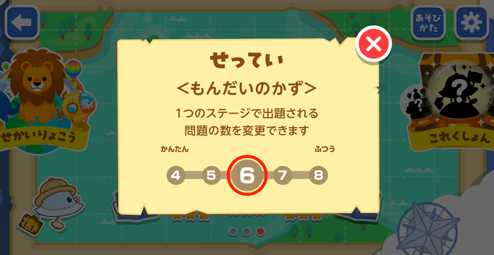 年齢やレベルに合わせて出題されるアイテムの種類を変更できます。ステージの難易度を調整しながら、お楽しみいただけます。