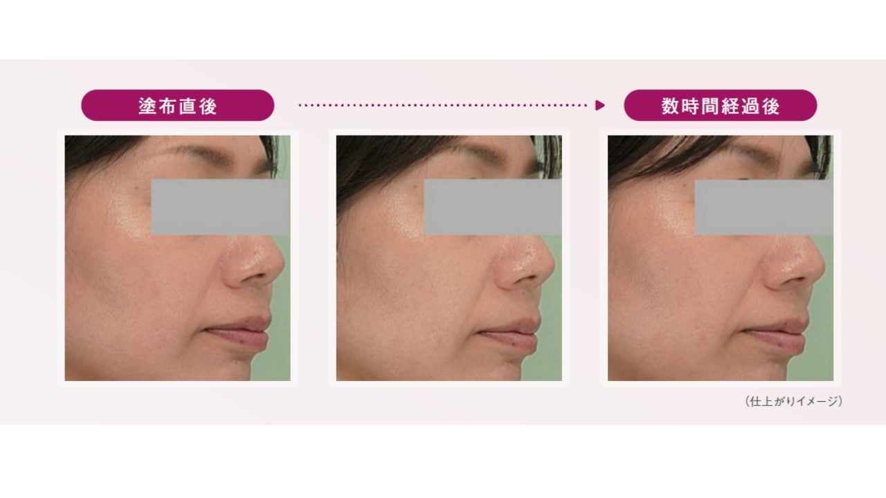 一時的にほうれい線を目立ちにくくする化粧下地。世界初※1の成分アプローチを採用。塗膜が収縮することで肌を引っ張り、シワと頬のふくらみの 2 要因による影を減らしてほうれい線を目立ちにくくします。