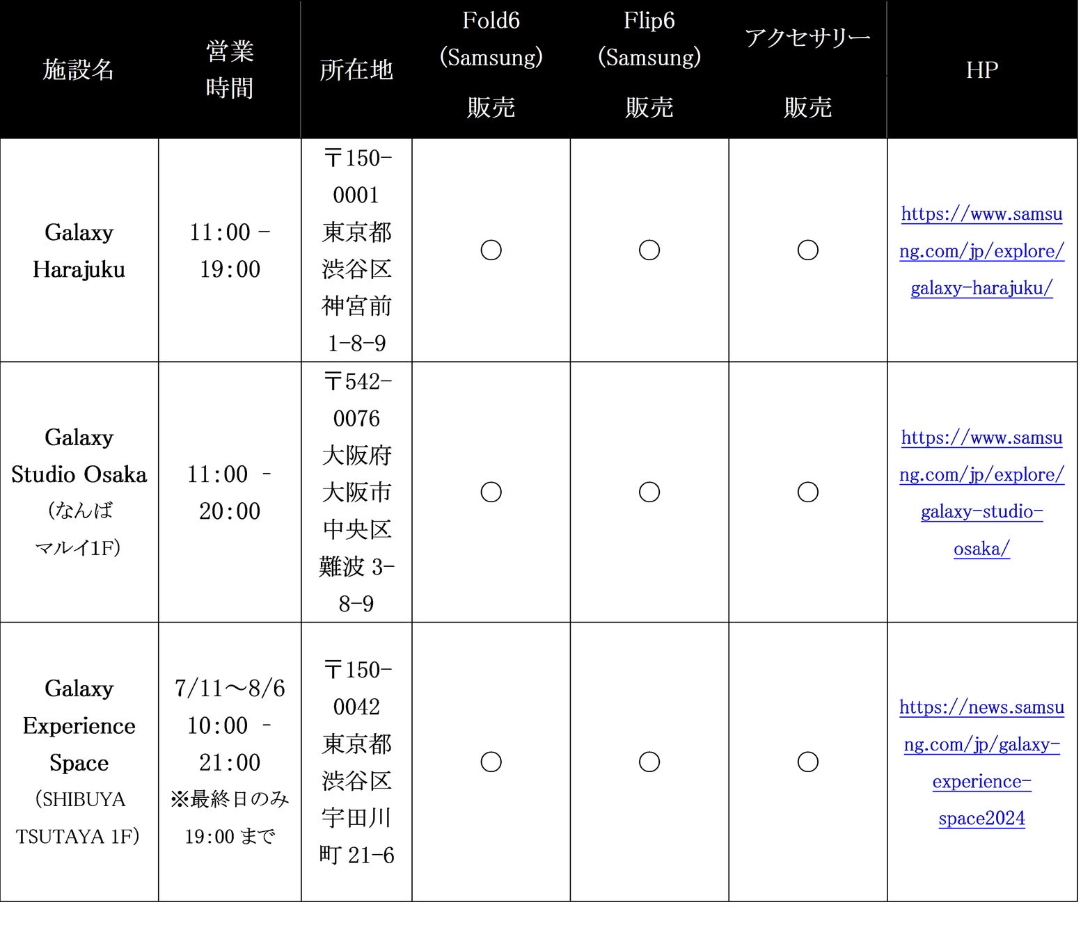 新製品をGalaxy世界最大級のショーケース「Galaxy Harajuku」(東京・原宿)、「Galaxy Studio Osaka」(大阪・難波/なんばマルイ1F)と、今回新設する特設会場「Galaxy Experience Space」(東京・渋谷)にて展示・販売中です。是非この機会にご来店ください。