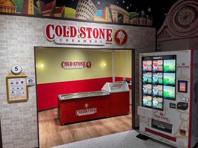 さらに、べニュー横にはコールドストーンの “パフェアイスクリーム自動販売機” を設置。店舗の人気メニューをパフェアイスクリームにアレンジした本商品は、自社工場にて、ひとつひとつ丁寧に手作業で製造。濃厚なアイスクリームに、フルーツやホイップクリーム、ソースなどをトッピングした見た目も華やかな一品です。仕事体験の思い出に、ぜひお子さまと一緒にお楽しみください。