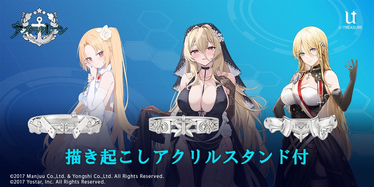 株式会社ユートレジャー(本社:東京都新宿区、代表取締役:伊藤 崇史)は、スマートフォン向けゲームアプリ「アズールレーン」とのコラボレーションアイテム「モチーフリング(指輪)」全3種類(クリーブランド、インプラカブル、ビスマルク)の予約受け付けを、2024年4月19日(金)~5月17日(金)の期間、ユートレジャーコンセプトストア池袋、ユートレジャーオンラインショップにて行います。
