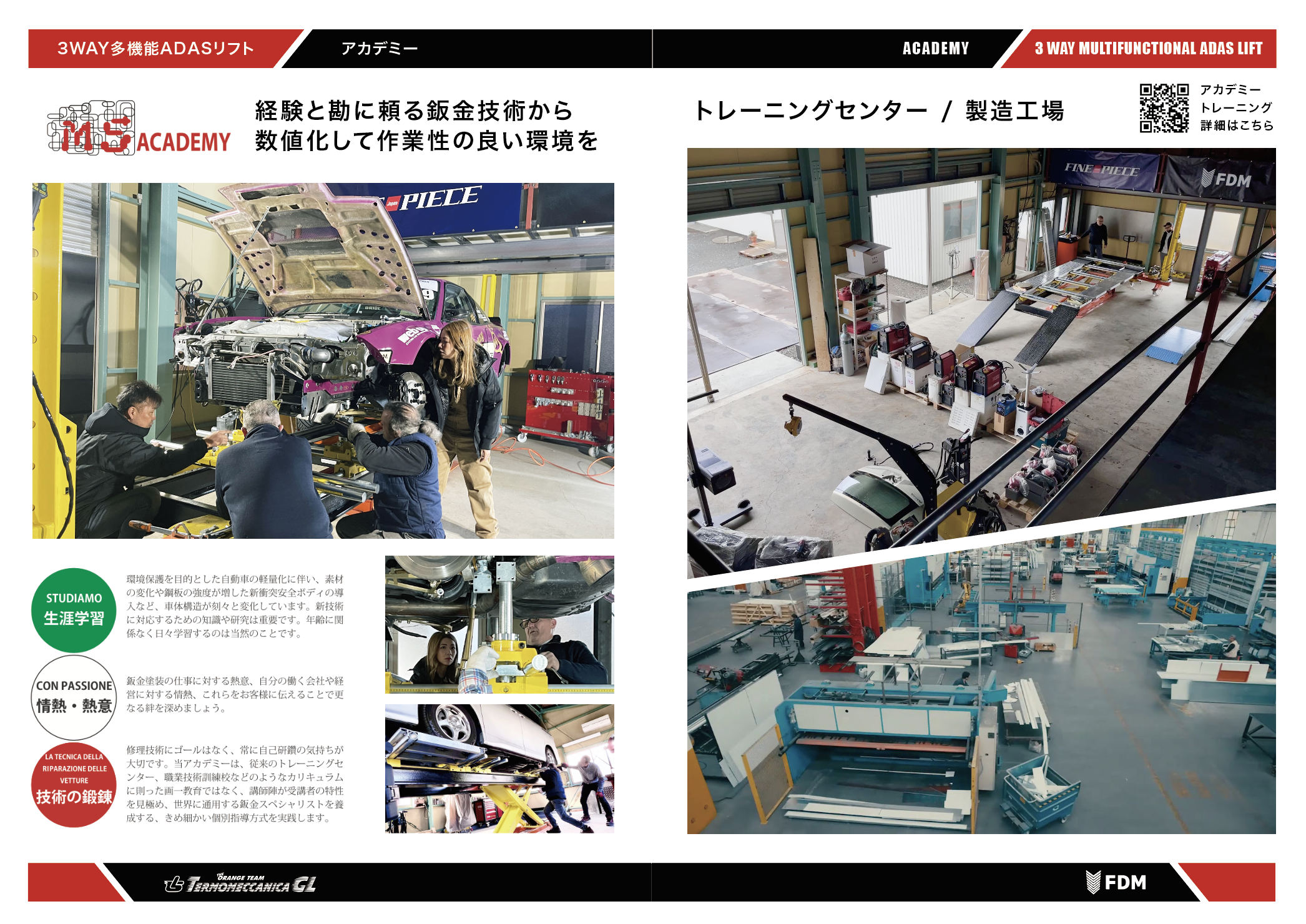 エフディエムでは、2022年3月4日、法改正案が閣議決定され遂に自動運転「レベル4」が解禁され、2024年10月からのOBD検査(車検)が目前に迫る中、今後自動車に導入される先進運転支援システム(ADAS)に採用されるセンサー類のキャリブレーションの前提条件として必要となる機能を網羅した「3WAY多機能ADASリフト」の導入を通して、補修・車体整備業界の維持発展に寄与するとともに、安全な自動運転社会の実現に貢献することを目指している。