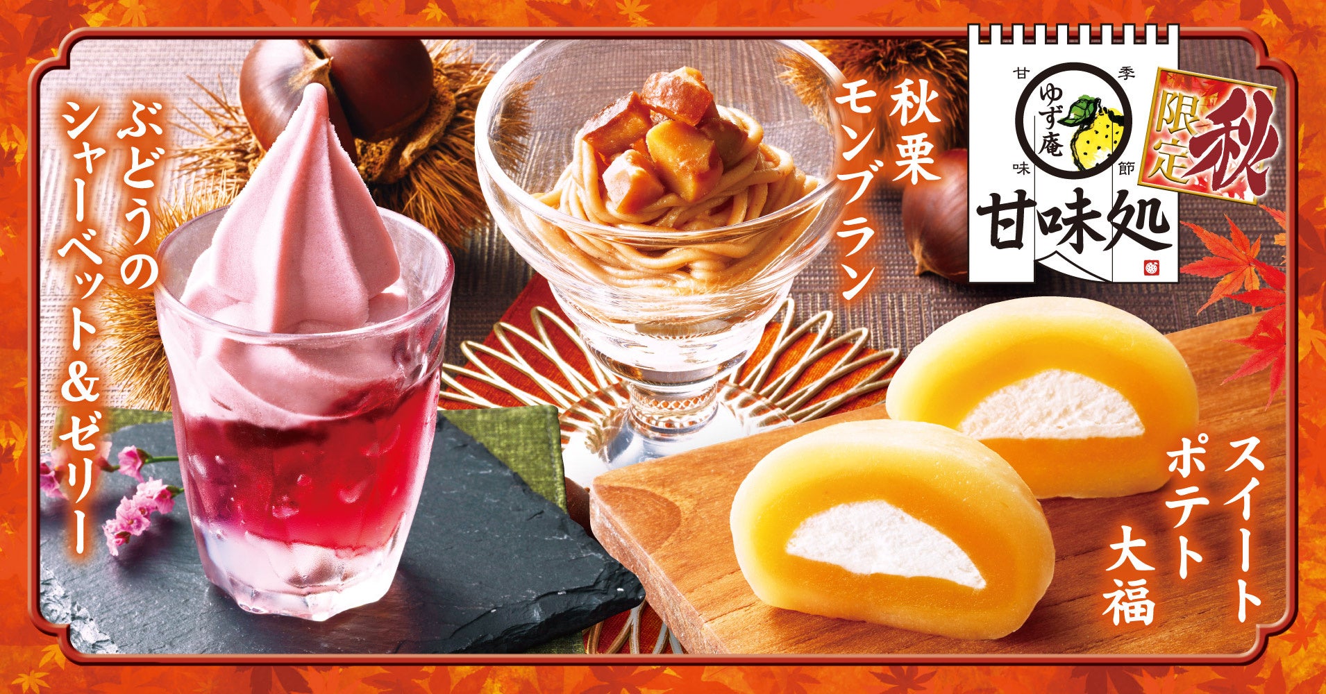 株式会社物語コーポレーション(本社:愛知県豊橋市/代表取締役社長:加藤 央之)が、全国94店舗展開する『寿司・しゃぶしゃぶ ゆず庵』(以下、ゆず庵)は、秋期間限定メニューを販売いたします。秋期間限定のお出汁は「黄金きのこ鍋だし」と、デザートは「スイートポテト大福」、「ぶどうのシャーベット&ゼリー」「秋栗モンブラン」の秋の味覚が登場いたします。