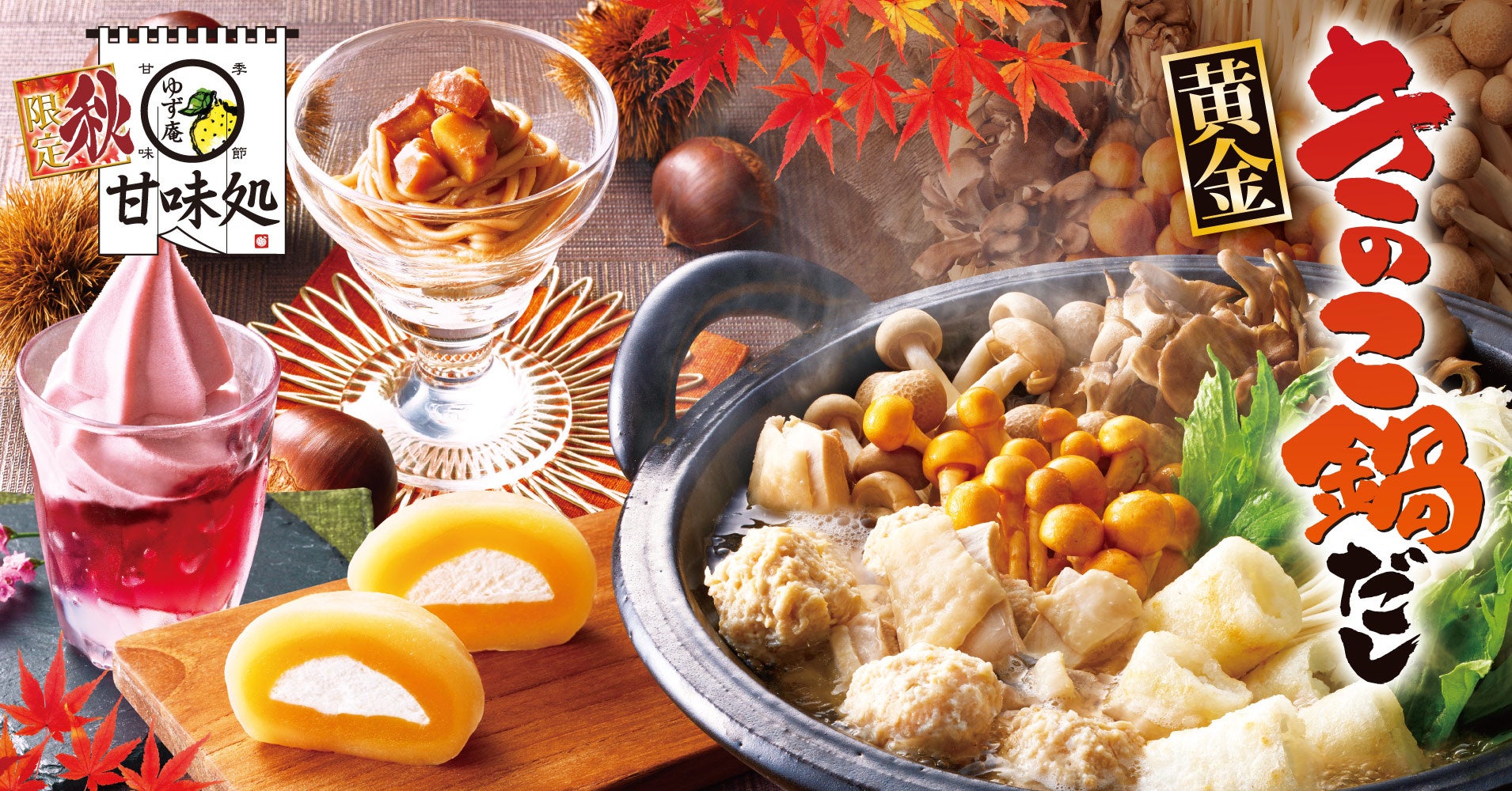 【ゆず庵】秋限定!きのこの香り際立つ「黄金きのこ鍋だし」や秋を感じるデザートが登場