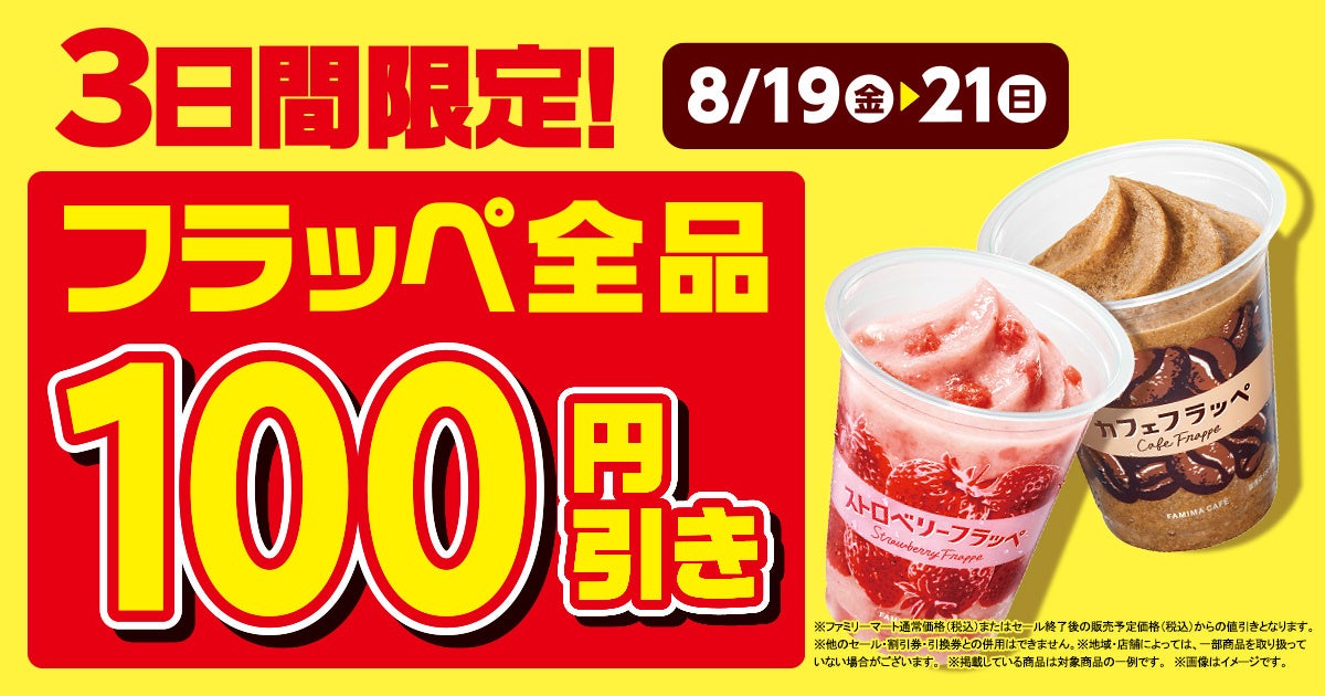 期間限定で「フラッペ全品100円引き」セールを実施いたします。ぜひ、この機会に「フラッペ」をお楽しみください。