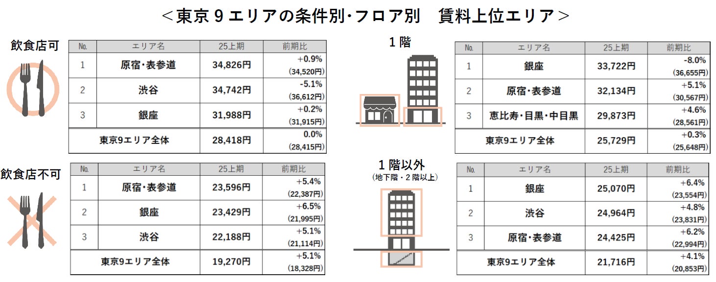 1.東京9エリアにおける2025年度上期の50坪以下の貸店舗の募集賃料(以下「賃料」)は、