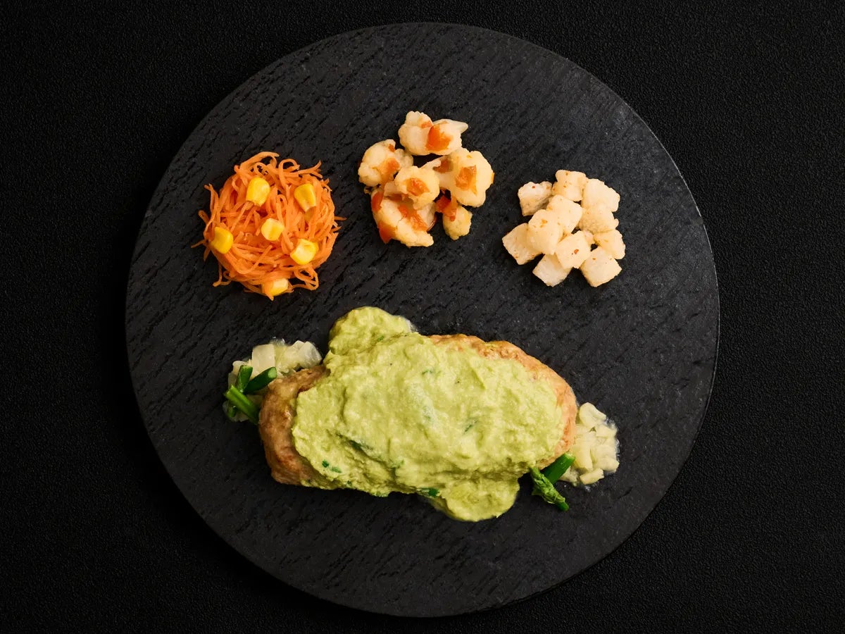 ナッシュ専属のシェフが試行錯誤を重ねて開発した特製ソースは、たっぷりのグリーンアスパラを使用。甘みと爽やかな香りを生かしつつ、ハンバーグに合うようなめらかな口当たりでほどよい食感に仕上げました。