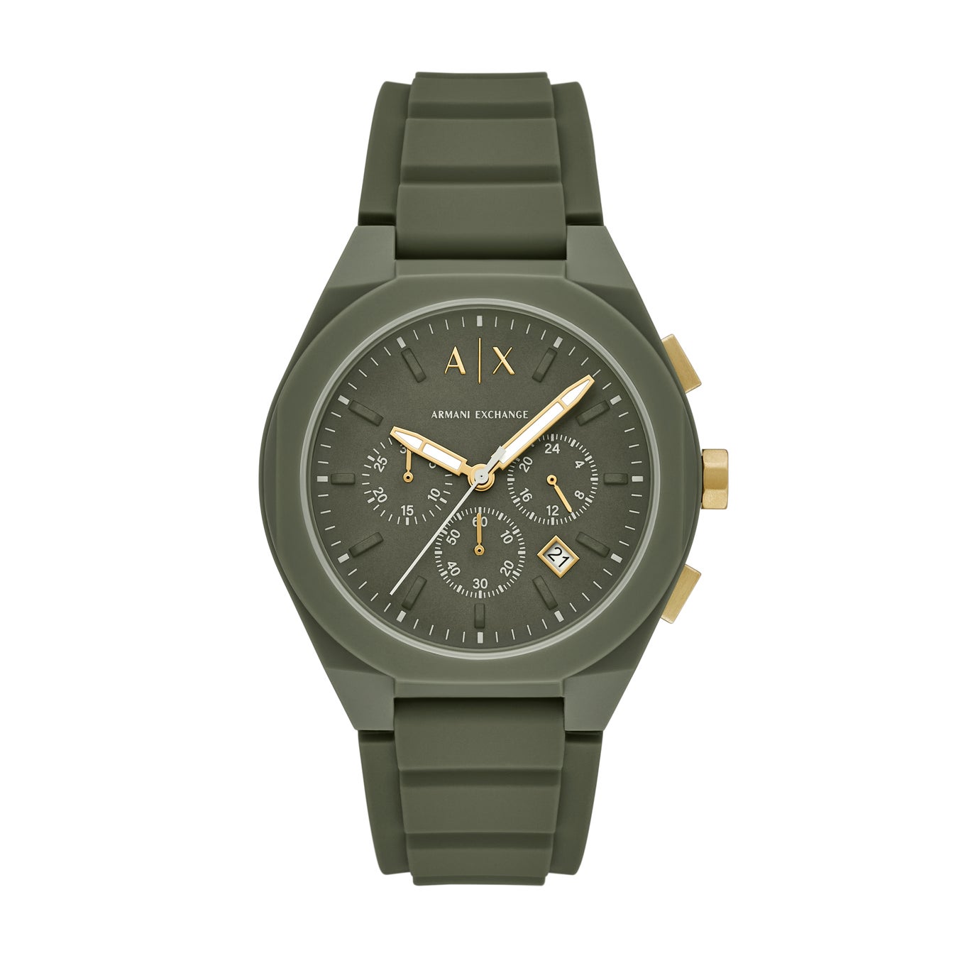 オリーブグリーンのシリコンストラップとダイヤルがひときわ目を引く、大胆なクロノグラフ。44mmのラージケースとミネラルクリスタルにより、夏のアクティブなシーンにも応えるタフなモデルです。