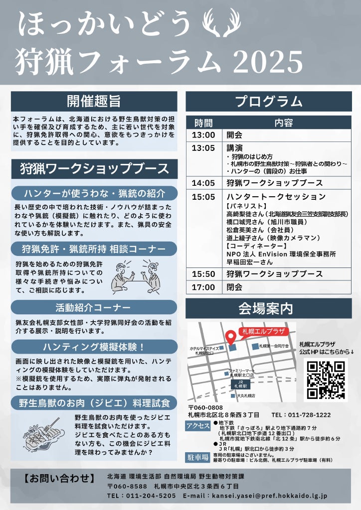 狩猟の魅力をまるごと紹介する【ほっかいどう狩猟フォーラム2025】2月1日(土)開催!