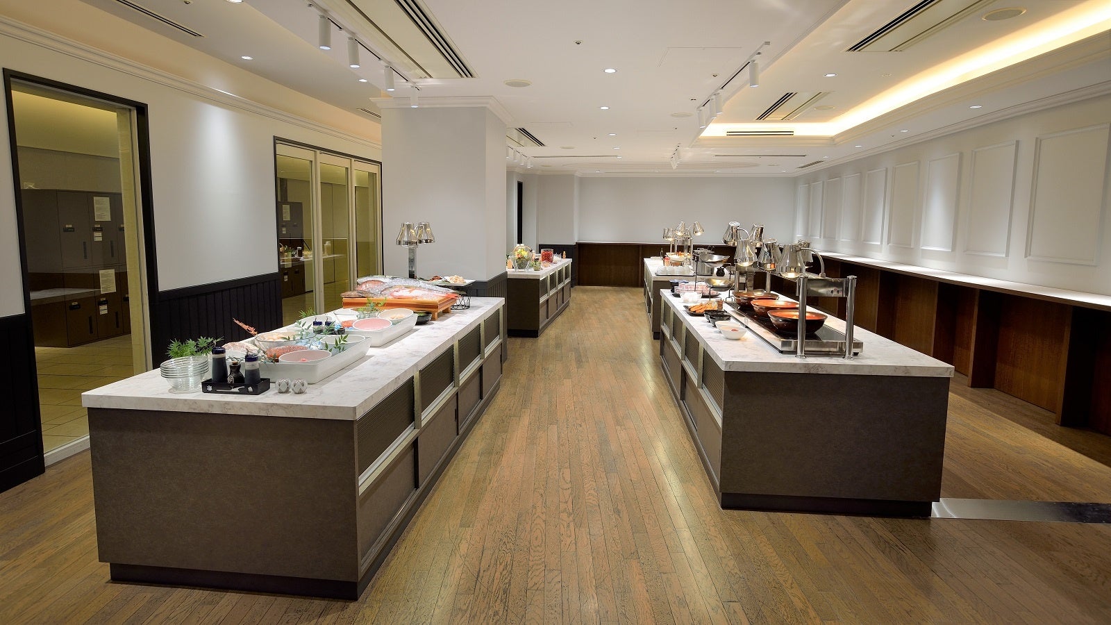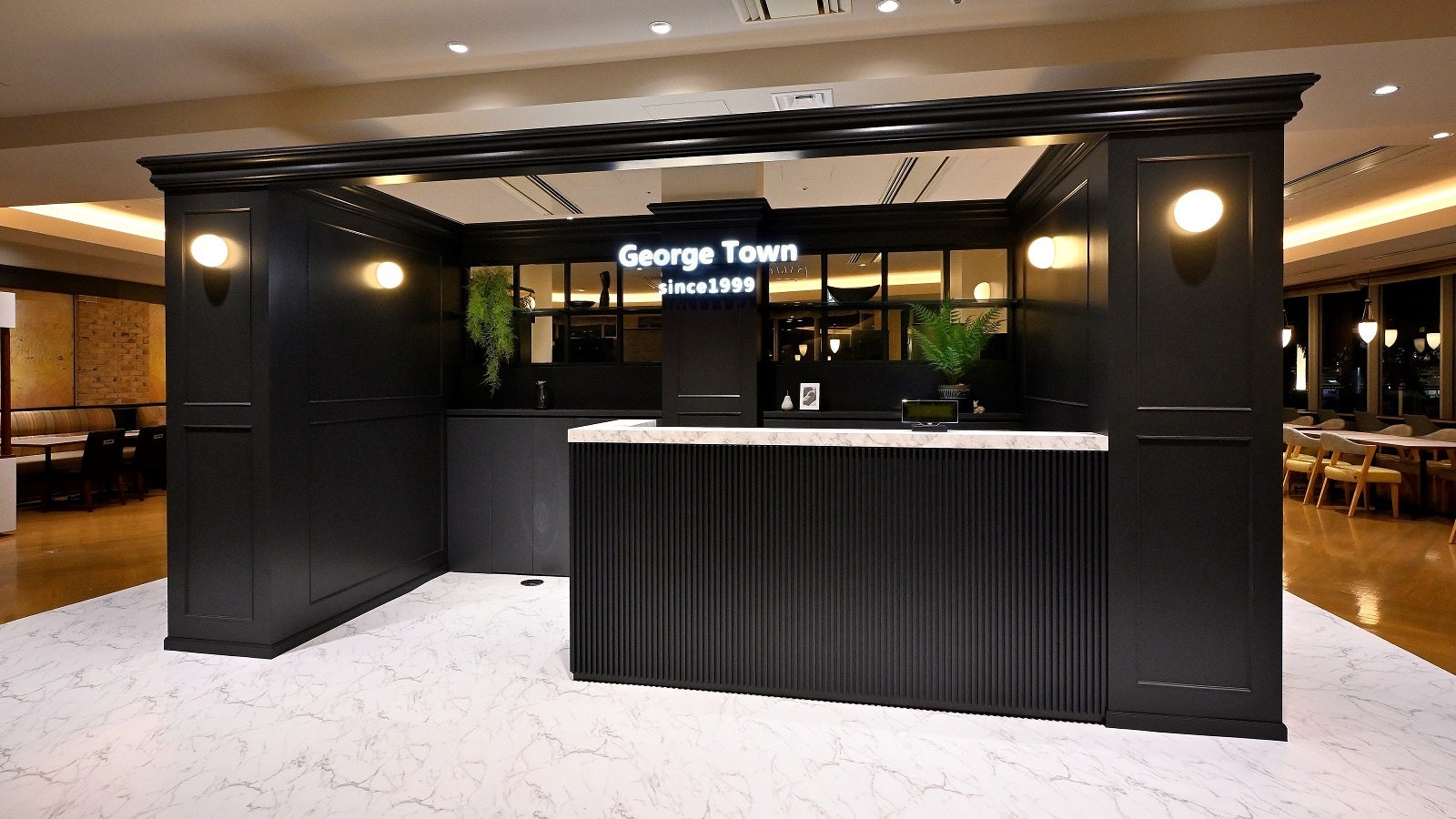 「ジョージタウン」は、街路樹の緑豊かな景色が眺められる都会のオアシスのような開放感のあるレストランです。今回のリニューアルでは、アイボリーを基調としたスタイリッシュで落ち着きのある内装デザインを採用し、どのようなお客様にも心地よくお食事をお楽しみいただける空間に生まれ変わります。また、人気の朝食ビュッフェは、ご宿泊以外のお客様も多く、混雑緩和を目指したレイアウトへ変更いたしました。ビュッフェエリアにはアイランド式の料理台を新設、両サイドからお料理を取れる動線にしただけでなく、客席エリアと分けることでお食事をゆったりと楽しめる空間にいたしました。また、客席エリアの一角にシェフのライブコーナーとデザートコーナーを新設、昔懐かしい揚げパンとカレーパンを出来立てでご提供いたします。また、混雑時にクイックにお食事をされたいお客様向けのスタンディングカウンター席、おひとりさま向けの窓際カウンター席、グループやファミリーのお客様向けのソファ席と、さまざまなニーズに応えるレストランにリニューアルいたします。