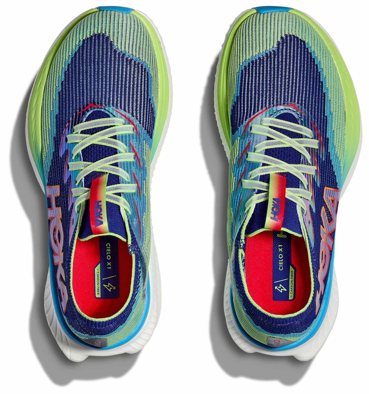 「CIELO X1」は、ダイナミックなプレート搭載ミッドソールシステムに重点を置いて作られました。新しい革新的なプレート形状は、シューズのジオメトリーを極限まで活用し、前足部のロッカーはストライドを前進させます。HOKAのプロダクトチームは、HOKAアスリートとともに「CIELO X1」をテストし、表彰台と自己ベストを狙えるHOKA最高峰のレースシューズに作り上げました。HOKAの最速シューズを試していただくのを楽しみにしています。
