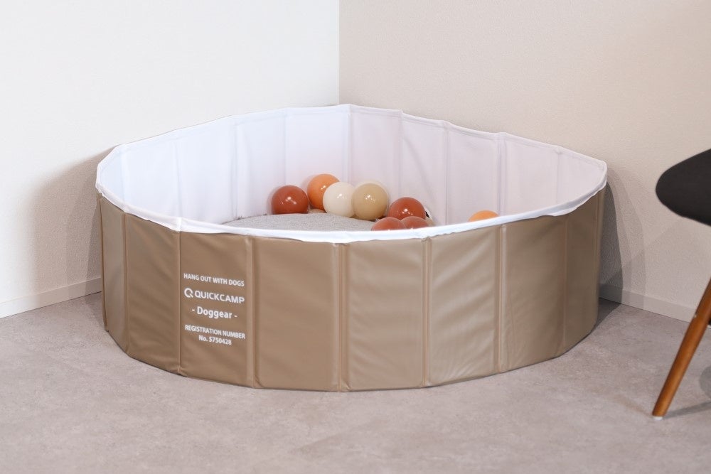 インテリアやキャンプギアとも相性の良いアースカラーを採用。ワンちゃんの水遊びの用途以外に、お子様のボールプールや遊びのスペースとしてもおすすめです。プールの形を変形させることが可能なため、お部屋のスペースに合わせてお使いいただくことができます。