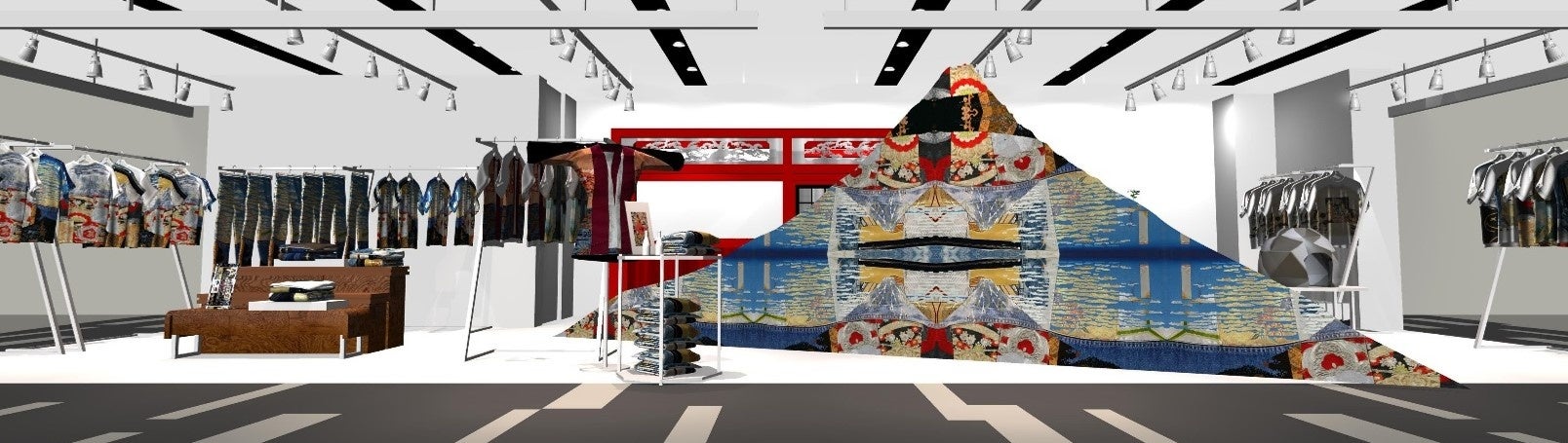 空港初出店となる同店では、「路地裏の美学」をコンセプトにビンテージアイテムや着物をリメイクした一点ものの魅力的なファッションコレクションを幅広く展開します。