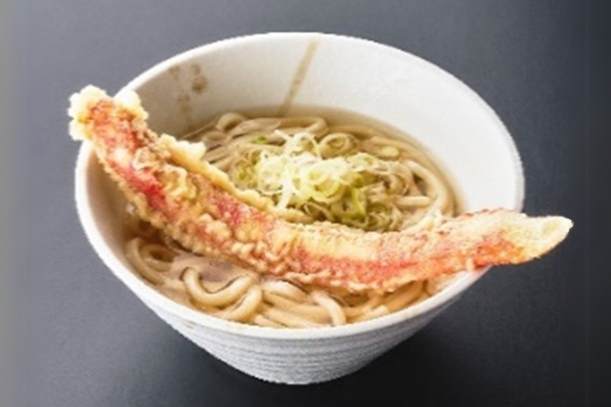 カニカマを生み出した能登の企業「スギヨ」のカニカマを使用した「カニカマ天うどん(そば)」を、通常690円のところ特別価格500円でご提供します。