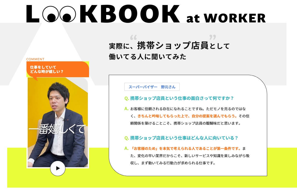 「JOB VOiCE」の第一弾として、携帯電話等の販売代理店事業を展開する株式会社フジデンのページを公開いたしました。同社の理念や事業内容だけでなく、実際に現場で活躍する社員のインタビューや動画を通じ、情熱あふれる社風やキャリアパスを鮮明に描き出しています。
