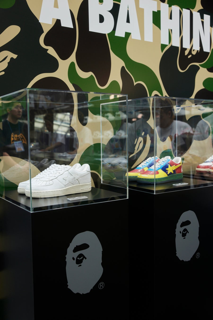 adidas Originalsとの協業ブースとは別に、BAPE®︎単独による特設ブースも登場しました。2000年の誕生以来、ストリートシーンの象徴として支持され続けるオリジナルスニーカー「BAPE STA™︎」の25周年を祝し、過去から最新作までの多彩なモデルを展示。会場では、最新モデルの販売も行われ、実際に手に取って購入できる貴重な機会として、多くの来場者の関心を集めました。
