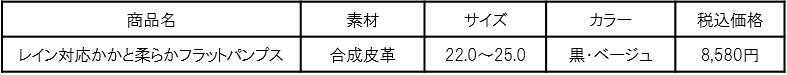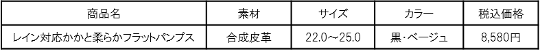 生地と縫い目の防水加工で雨の日も安心!「レイン対応かかと柔らかフラットパンプス」が新登場!~レインシューズの硬さを感じさせない柔らかい履き心地~
