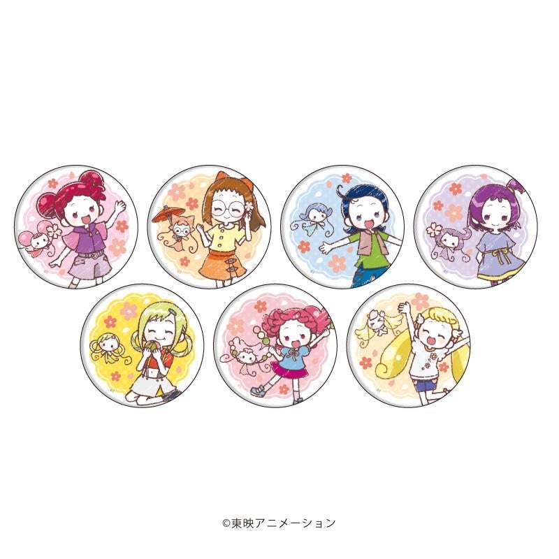 お出かけ先でも笑顔とエネルギーをチャージできそうな缶バッジは、直径6.5cm。春らしさを感じるお花と一緒にどれみたちのイラストをデザインしているので、彼女たちの満開の笑顔&ハッピー気分をたっぷり楽しむことができます。