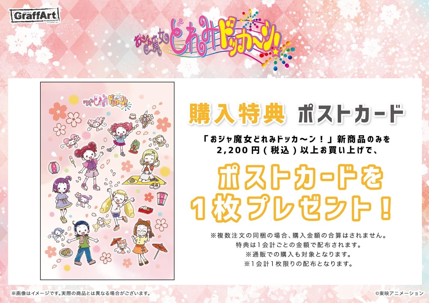『おジャ魔女どれみドッカ~ン!』新商品のみを1会計2,200円(税込)以上お買い上げで、購入特典としてポストカード(全1種)を1枚プレゼント。ここでしか手に入らない限定品です♪