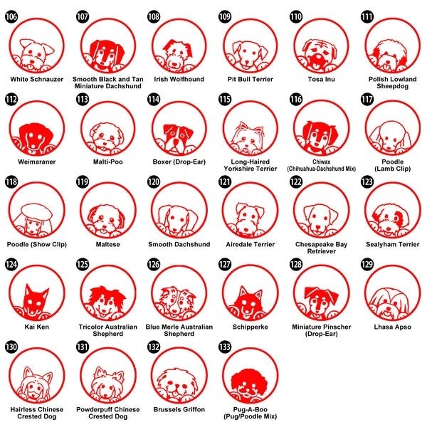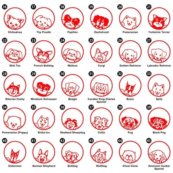 「いぬずかん」は猫好きのためのはんこ「ねこずかん」発売後にSNSから届いた「犬好きのためのハンコは作れませんか?」という声に応えて企画した犬好きのためのはんこ。犬好きの方は自分が飼っている犬種を望まれる傾向が強いことから、SNSよりいただいた犬種リクエストに応えつづけるうちに、合計118種類の犬種(イラストは133種類)から選べる一大シリーズとなりました。