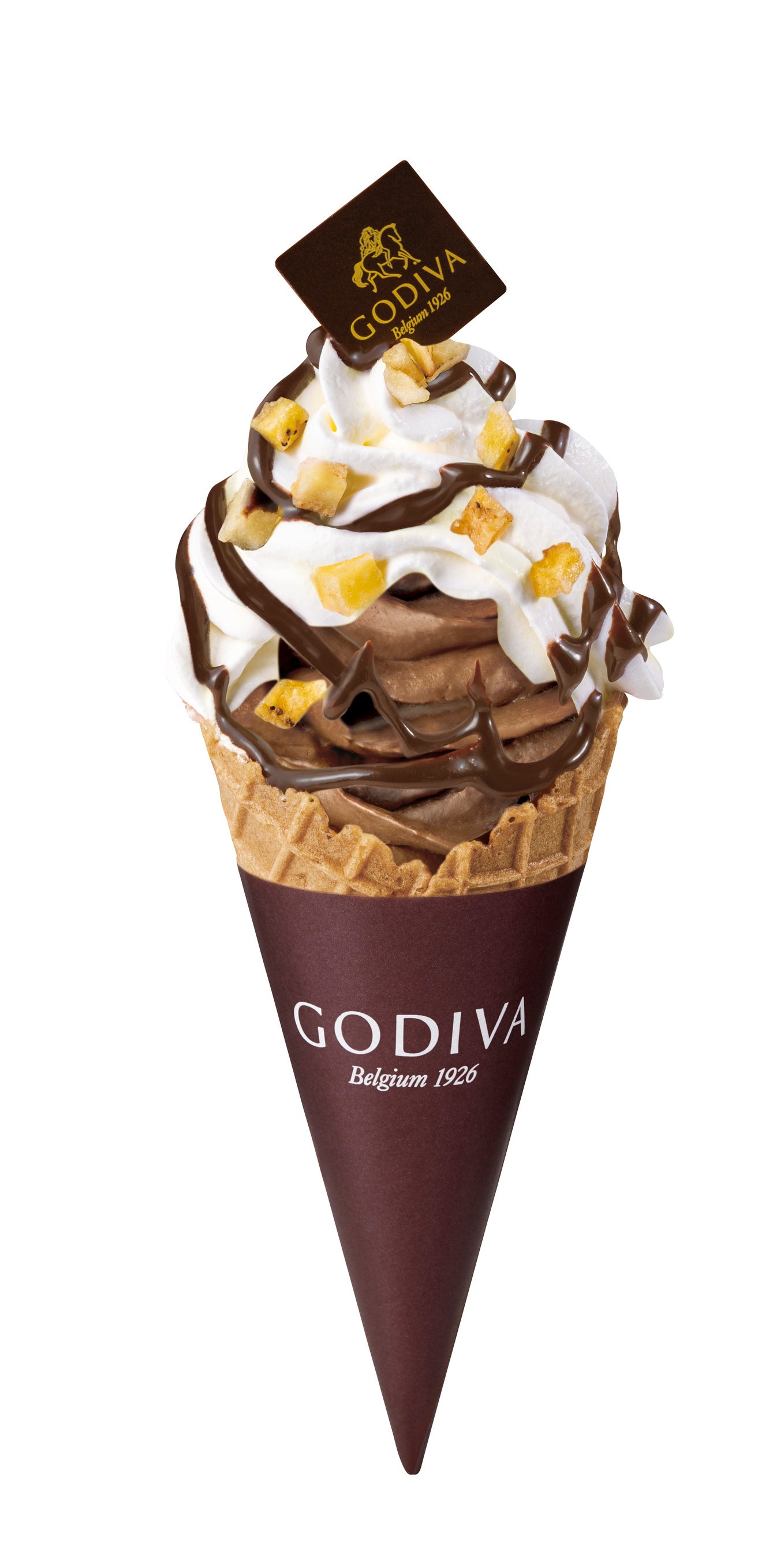 濃厚なチョコレートバナナの味わいを堪能できる、大きいサイズのソフトクリーム。2種類のダークチョコレートを使用したゴディバのソフトクリームに、バナナ風味のホイップクリームとバナナソース、バナナチップスをトッピングしました。滑らかなクリームの食感と、冷たいソフトクリームがマッチした、贅沢な一品です。