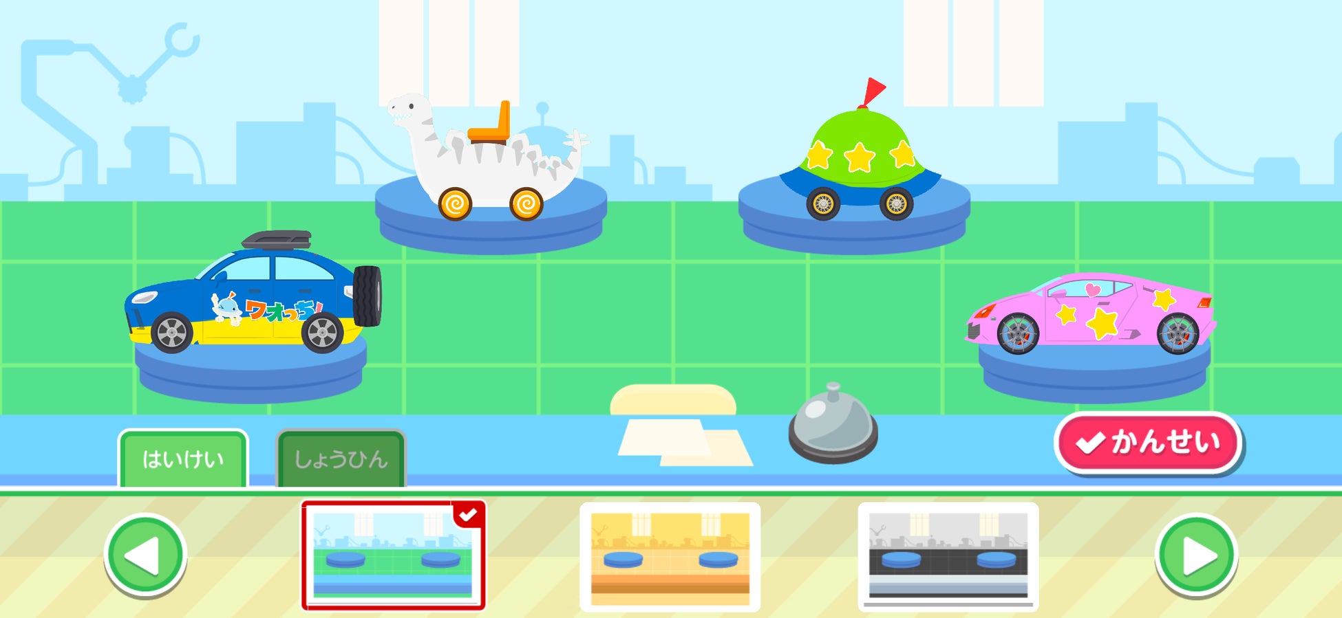 お店に訪れるお客さんに合わせてかっこいい車を作ったり、おいしいパンを作ったり、いろいろなお店で作ったり、遊んだりできます。