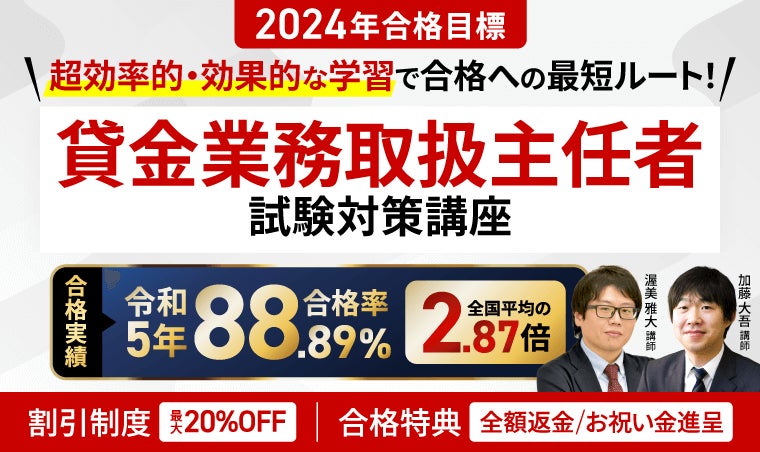 2024年合格目標!貸金業務取扱主任者試験合格カリキュラムリリース!