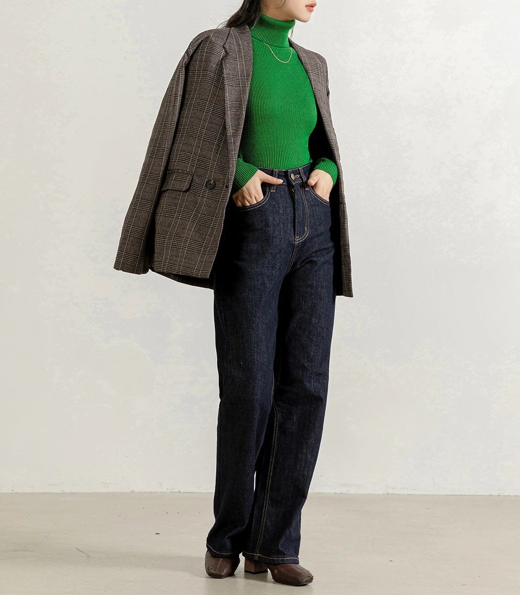 暖かく着回しやすい!ハイネック×リブニットが人気
