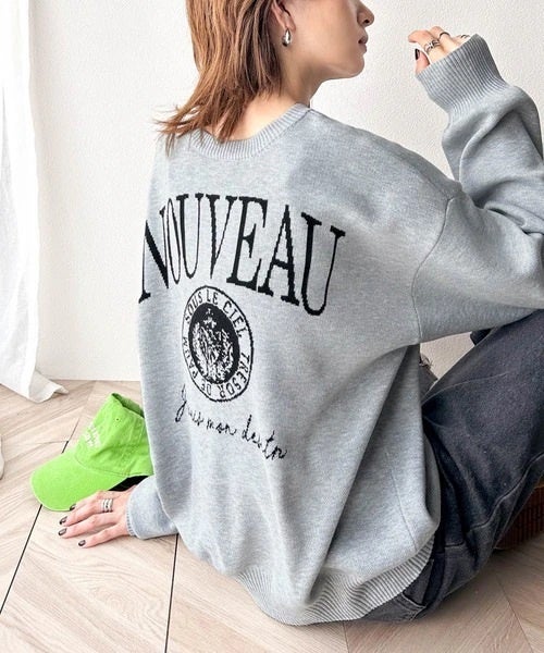 ゆるっとしたシルエットに、アクセントとして異素材のビッグロゴやタグをあしらったニット。着こなしの幅が広がる前後裏表4WAY仕様。