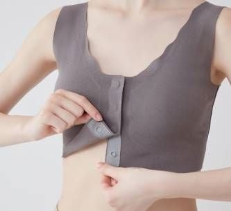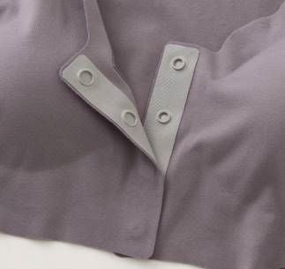 今回発売した新商品は、ソフトな肌触りの綿混素材はそのままに、従来縫製で仕上げていた前立て(スナップボタン部分)も接着仕様にすることで縫い目ゼロのやさしい着け心地を実現しました。さらに、スナップボタンも留め外しがしやすいように改良するとともに、ボタンの数を1つ減らして開け閉めの手間を軽減。バストにフィットしやすいように挿入パッドも少し大きくしました。