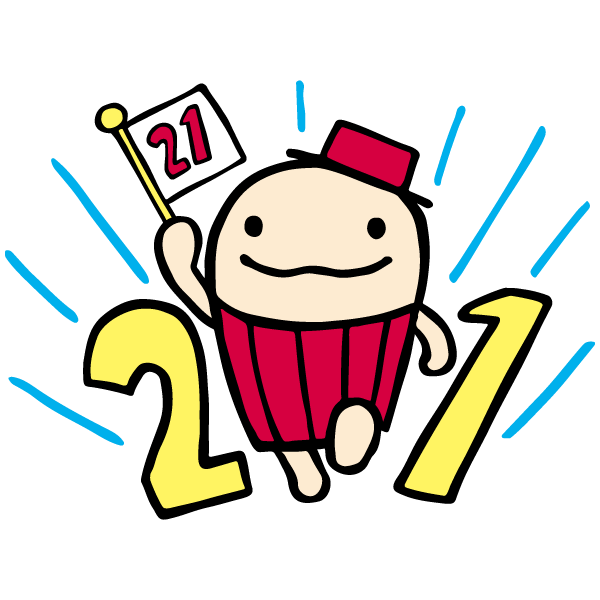 今回使用している21周年ロゴは、セントレアのオリジナルキャラクター「なぞの旅人フー」が、20周年の節目を経て、21年目へと明るく前に歩みだす姿をイメージしてデザインされたものです。