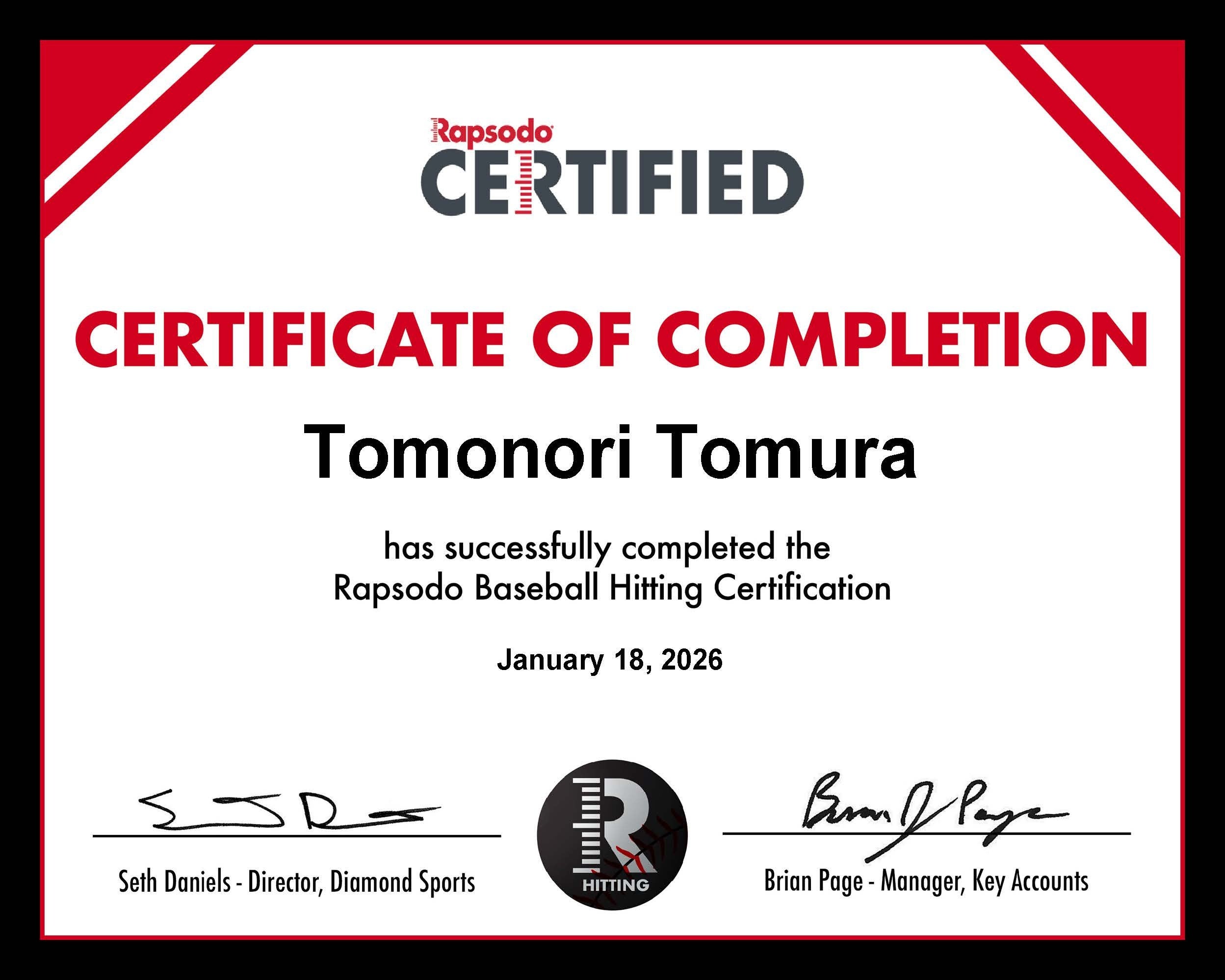 ・資格取得: Rapsodo Certified公式コースにて資格取得(下図)